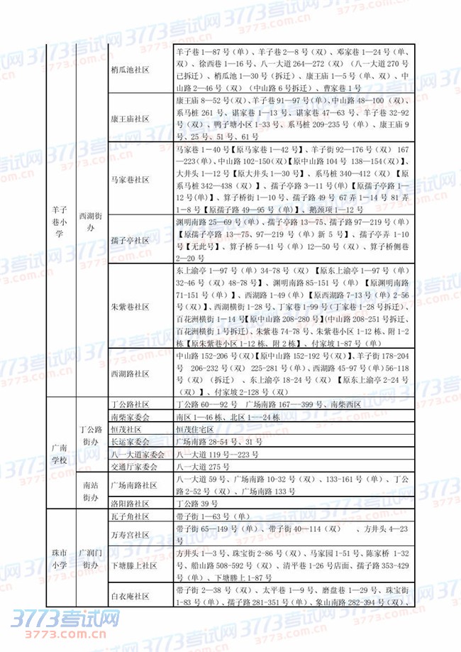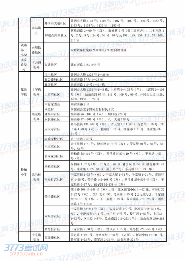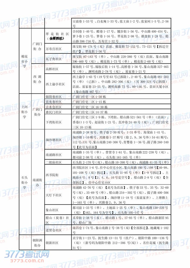 孺子路168号-248号(双)、校厂北区住宅小区1—12栋、南海行宫2-22号(双)、校厂北81-95、马家井1-35号【已无此号】、干家前街73-181号(单)、下三益巷1-18号、象山南路275-325号、渊明南路1号1-5栋