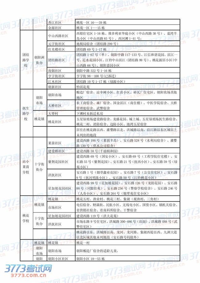居住在桃花路以西、灌婴路以北、洪城路以南、沿江路以东区域以上未列出的地段