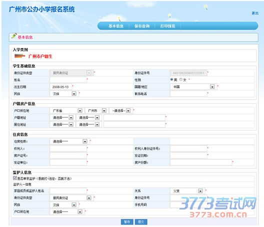 4、登录后,可见到图3,基本信息输入页面,按实际情况输入孩子的基本信息,点击“暂存”。