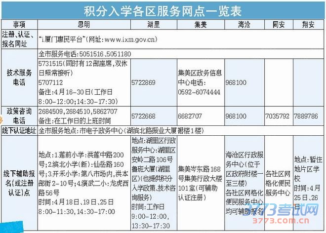 本报根据各区提供给我们的资料,为您制作最实用的服务指南。本报教育类微信公众号“厦门招考”今日继续为您推送各区积分入学资料集锦。