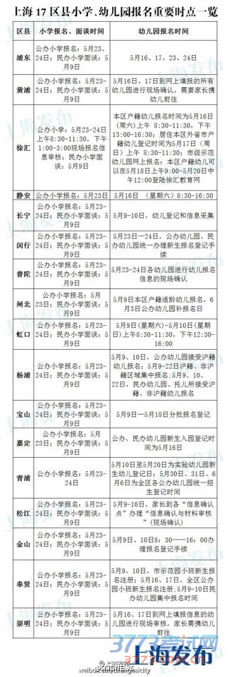 [图文]2015上海市民办小学幼儿园报名面谈时间