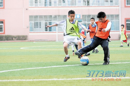 雨花区长塘里小学校足球队的孩子们在放学后进行足球训练。长沙晚报记者 陈飞 摄