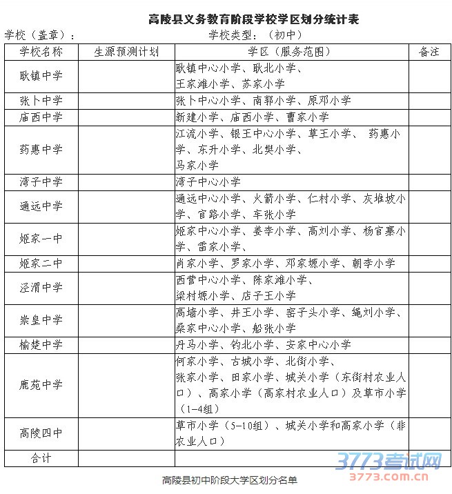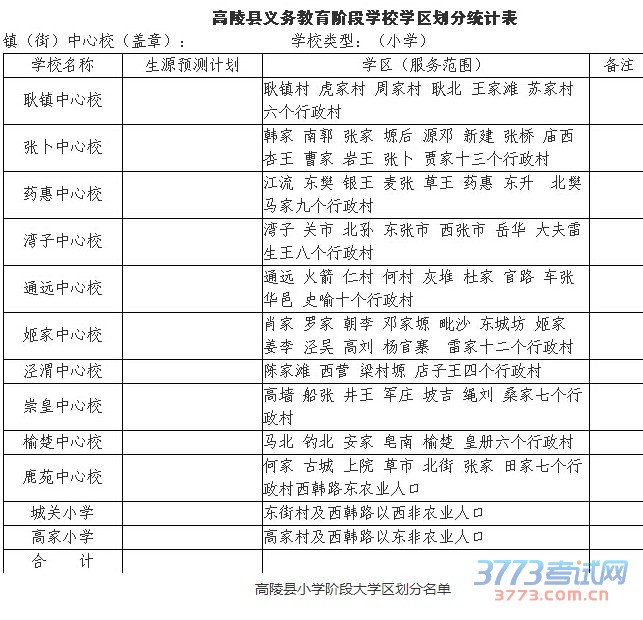 [组图]2015西安高陵县小学初中学区划分名单公布