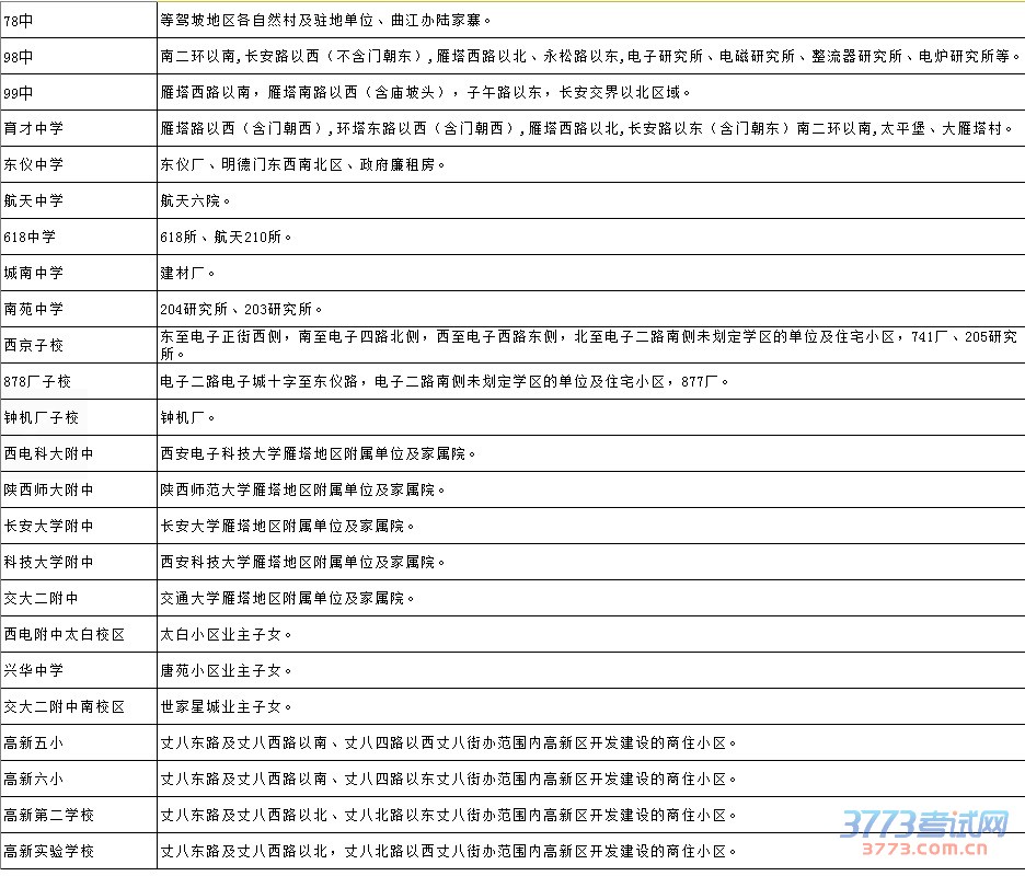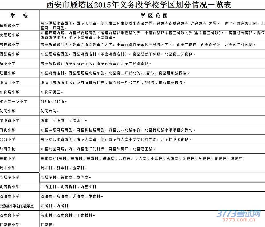 [组图]2015西安雁塔区小学初中学区划分(含高新曲江)