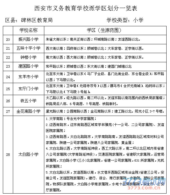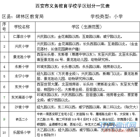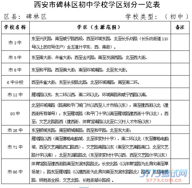 2015西安碑林区义务教育公办学校学区划分 (小学+初中)