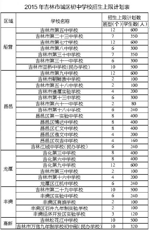 记者从市教育局了解到,为进一步规范普通中小学办学行为,切实解决超规模办学和“大班额”问题,市教育局制定了2015年吉林市城区普通中学和市教育局直属小学招生计划。