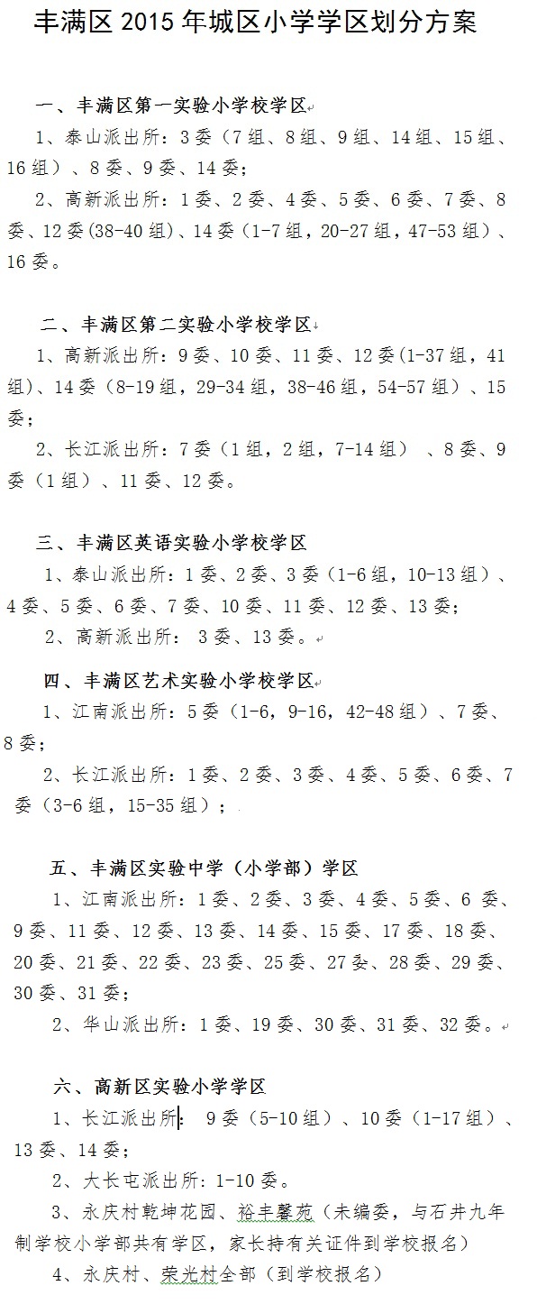 为贯彻落实《义务教育法》、《吉林省义务教育条例》和《教育部办公厅关于做好2015年城市义务教育招生入学工作的通知》(教基一厅〔2015〕1号)文件精神,我市四个城区教育局根据《吉林省义务教育学校办学基本标准》、按照相对就近原则,综合考虑历史沿革、管理体制、学校布局、人口分布、生源数量等因素,在广泛听取学校及学生家长的意见后,又先后召开部分人大代表、政协委员、小学新生家长参加的座谈会和咨政协商等会议,经各区教育局的充分调研和论证,并根据各区具体实际,确定各行政区域小学学区划分范围,现统一面向社会公布。相关政策咨询事宜可通过吉林市教育信息网查询或电话咨询各区教育局。