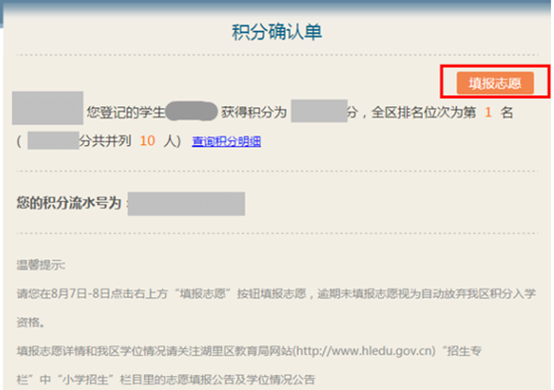(8月7日—8月8日未在网上进行志愿填报的,视为自动放弃参加湖里区积分入学电脑派位资格。)