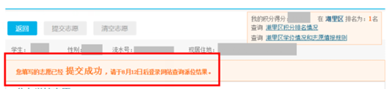 9.志愿填报成功后,页面上方会显示您填写提交成功的提示。