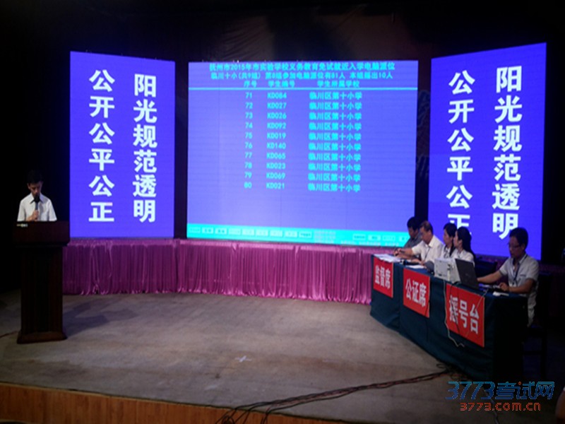 8月12日上午,抚州市属公办学校义务教育免试就近入学电脑摇号派位现场直播在抚州电视台演播大厅举行。市、区两级人大代表、政协委员和市教育局监察室全程监督,市公证处全程公证,130名学生家长代表参与现场按键操作,江西广播电视台都市频道、江西广播电视台综合新闻频率、江西日报、信息日报、江南都市报驻抚记者站及本市各大媒体记者现场采访。