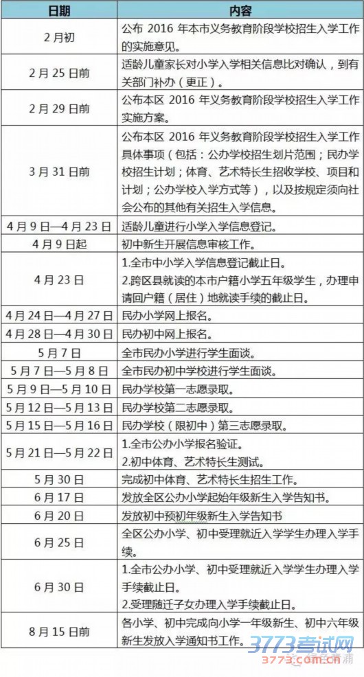 2016年,区县教育行政部门受理随迁子女办理入学手续截止日为6月30日。