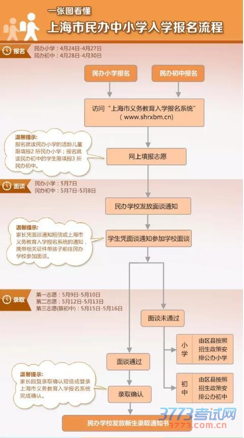 民办小学报名:报名时登录“上海市义务教育入学报名系统”(www.shrxbm.cn),点击“民办小学报名”进行网上报名。