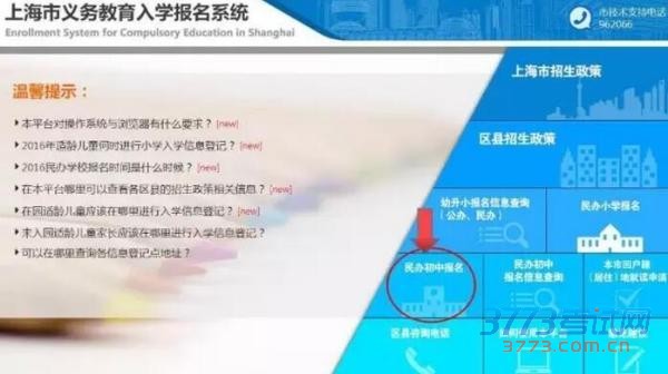 民办初中报名:报名时登录“上海市义务教育入学报名系统”(www.shrxbm.cn),点击“民办初中报名”进行网上报名。