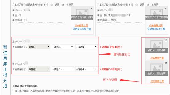 根据家长所填的身份证信息自动获取暂住、社保缴交记录,系统获取到的社保缴交单位如果是其他区,但实际在湖里区工作的,才需要上传务工证明,系统里可以直接下载证明格式,也可以在湖里教育局网站上下载。详细填写后到社保缴交单位加盖公章,再上传到登记页面的暂住得分项的证明上传处。注:详细阅读下方的“务工地审核事项说明”。
