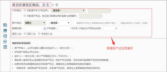 是否在湖里区购房是由家长根据自己的实际购房情况点选的,阅读下方的购房审核事项说明,更加清楚地了解自己所购置的房产是否符合条件。