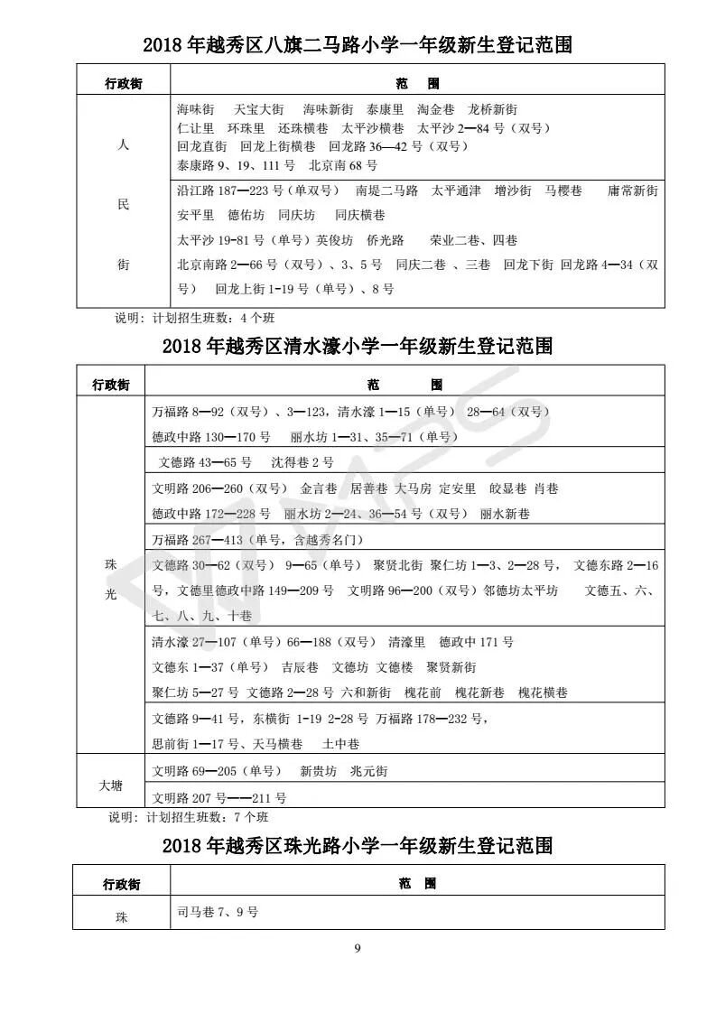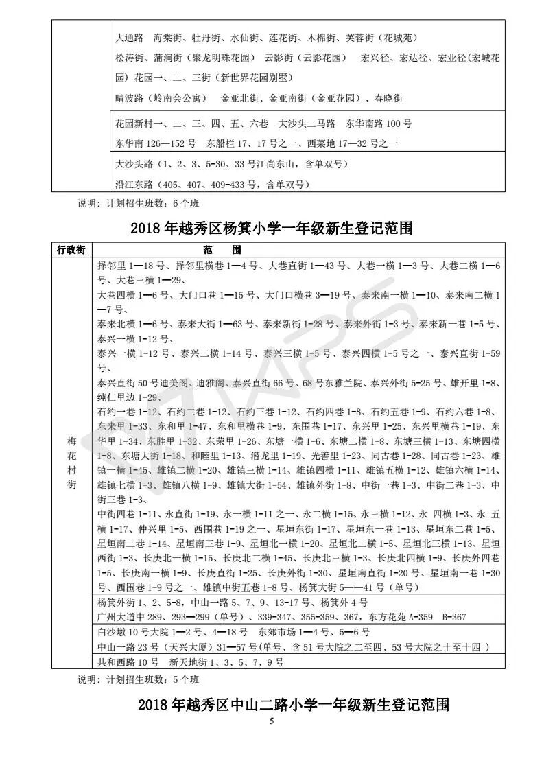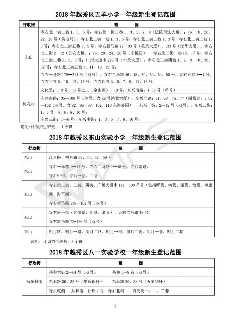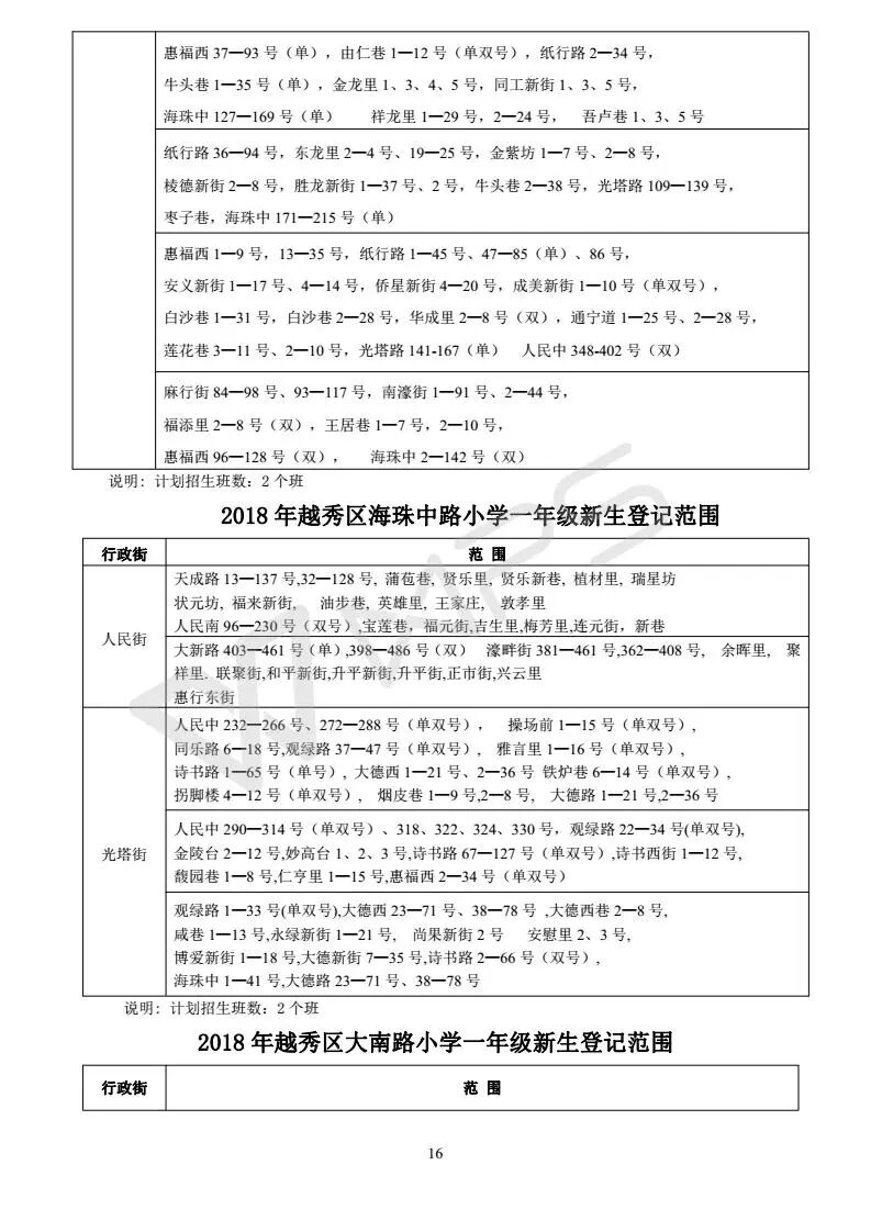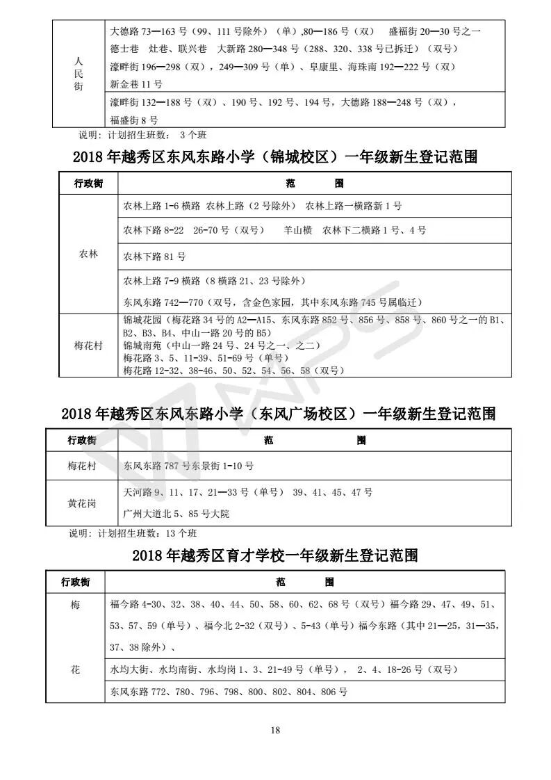 详见《2018年越秀区小学招生问答》