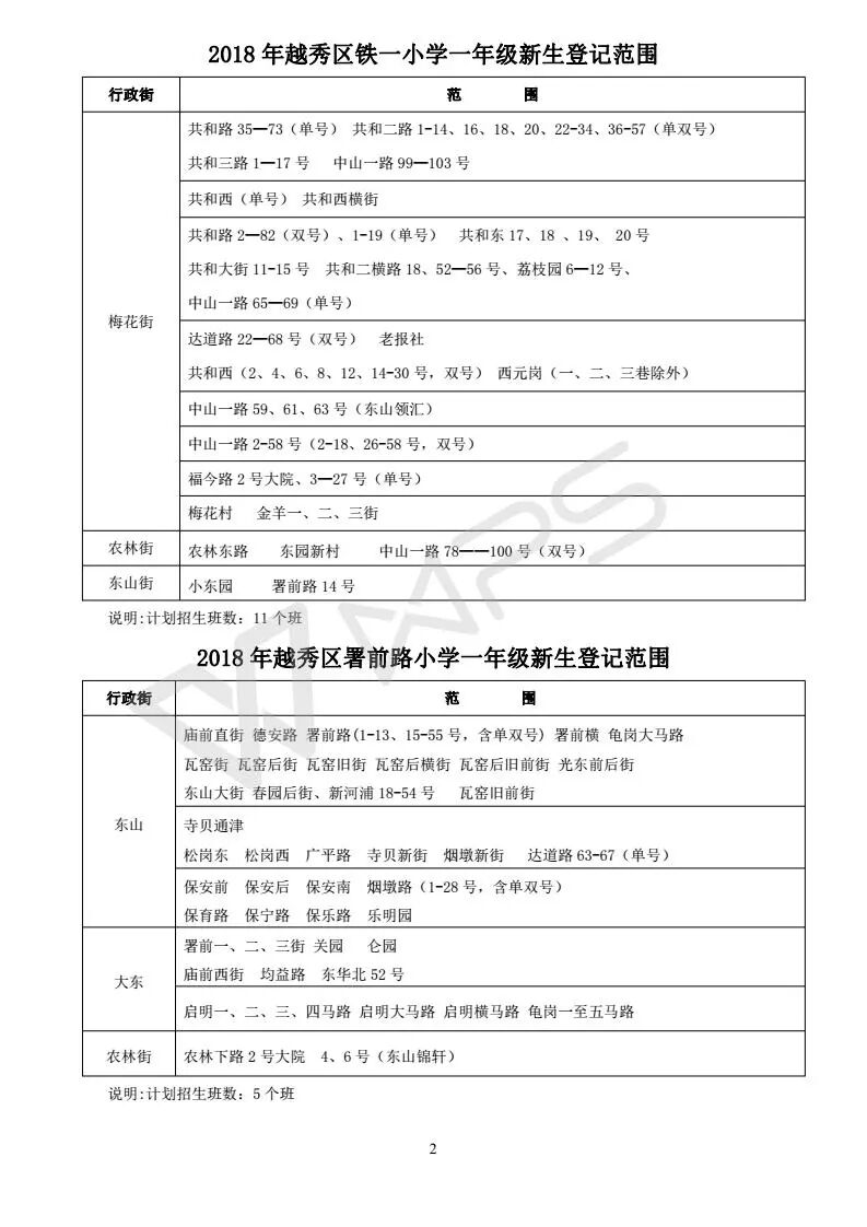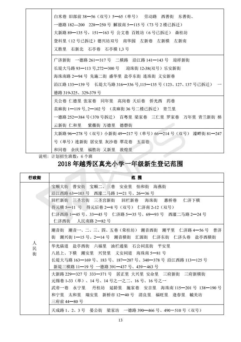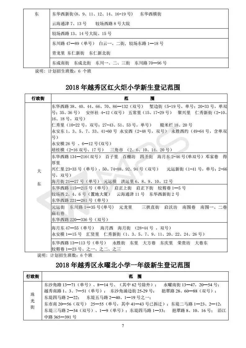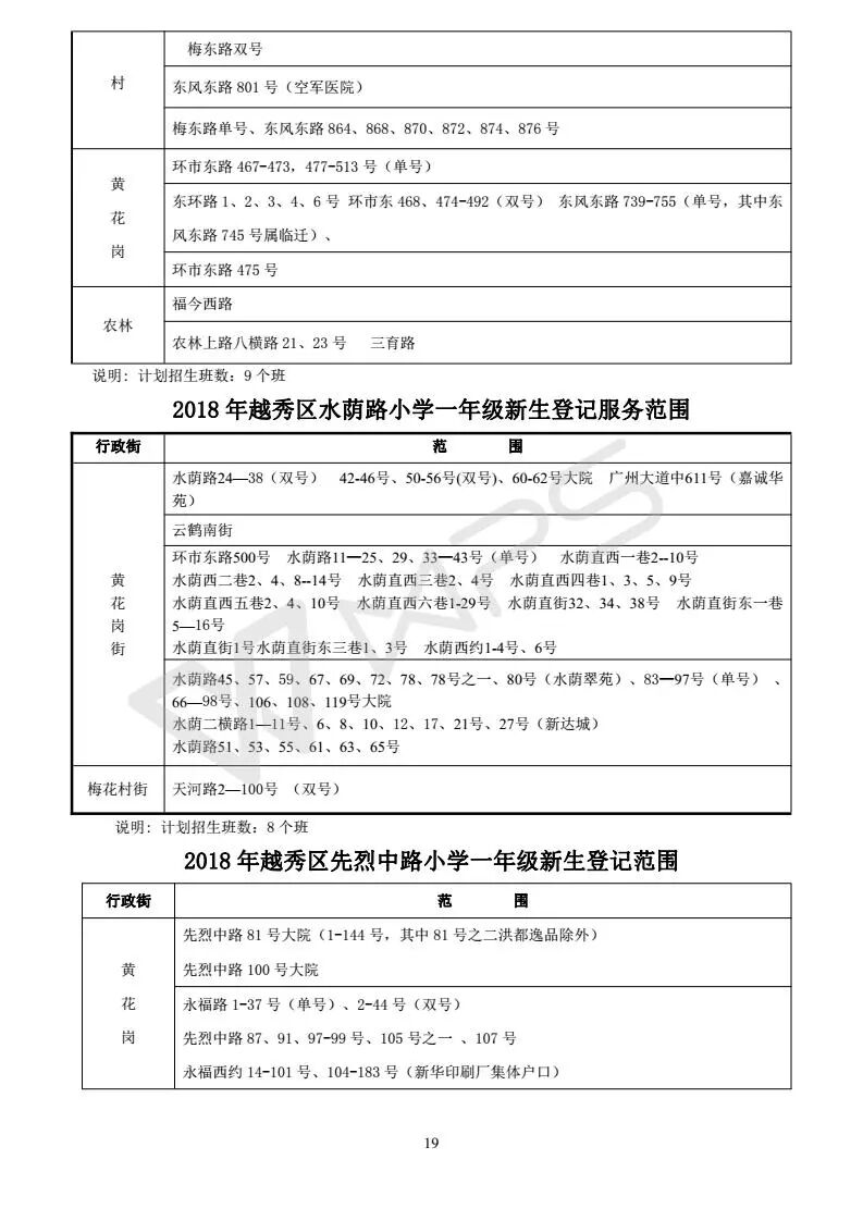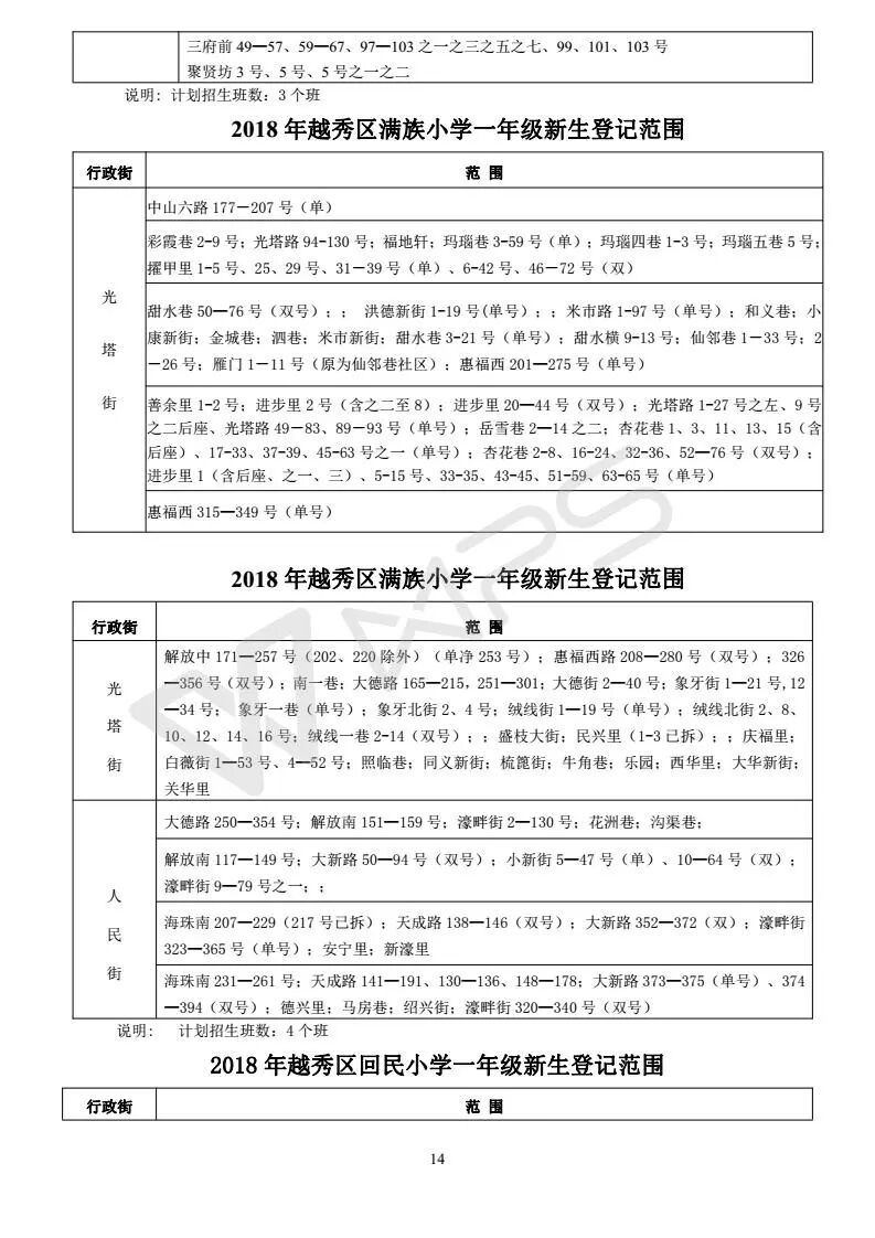 详见《2018年越秀区小学招生问答》