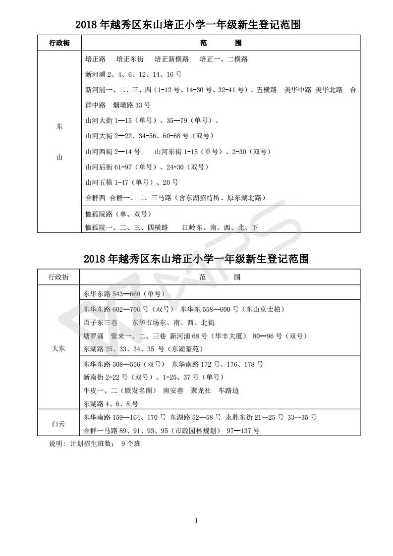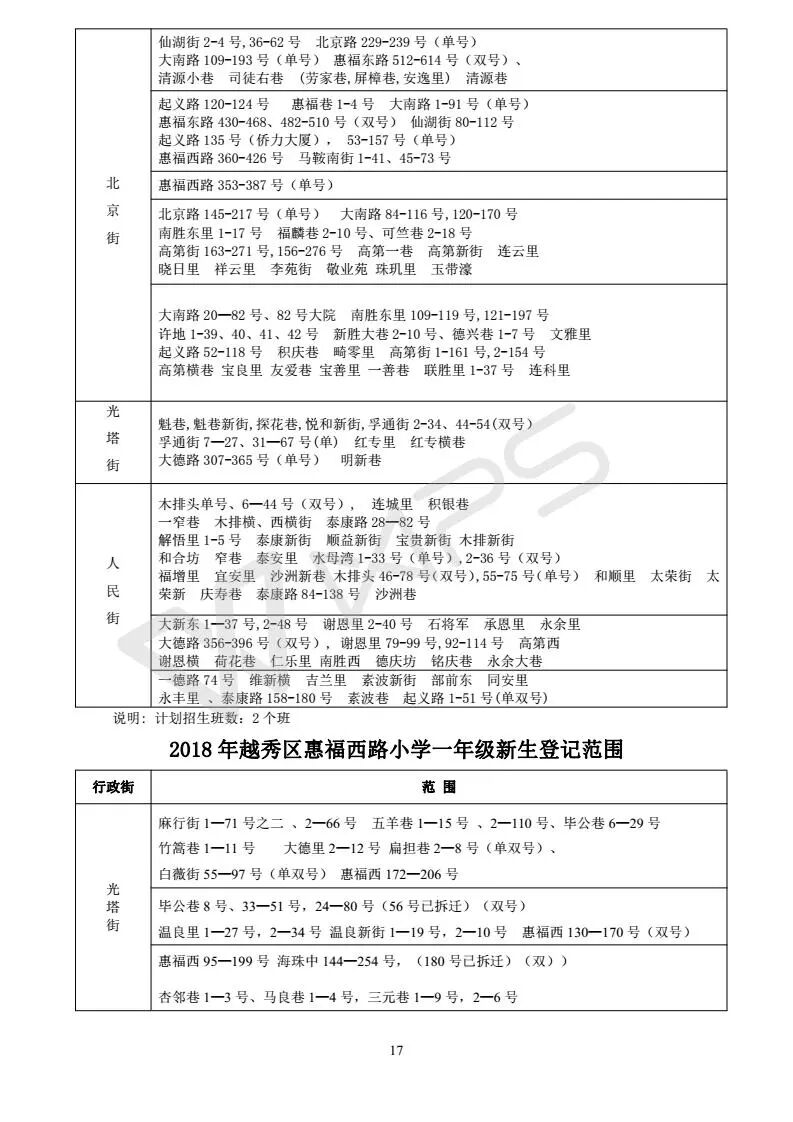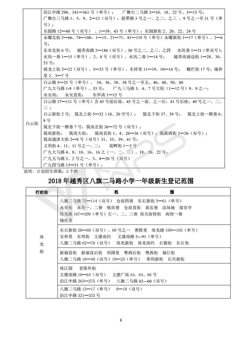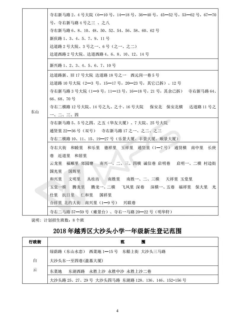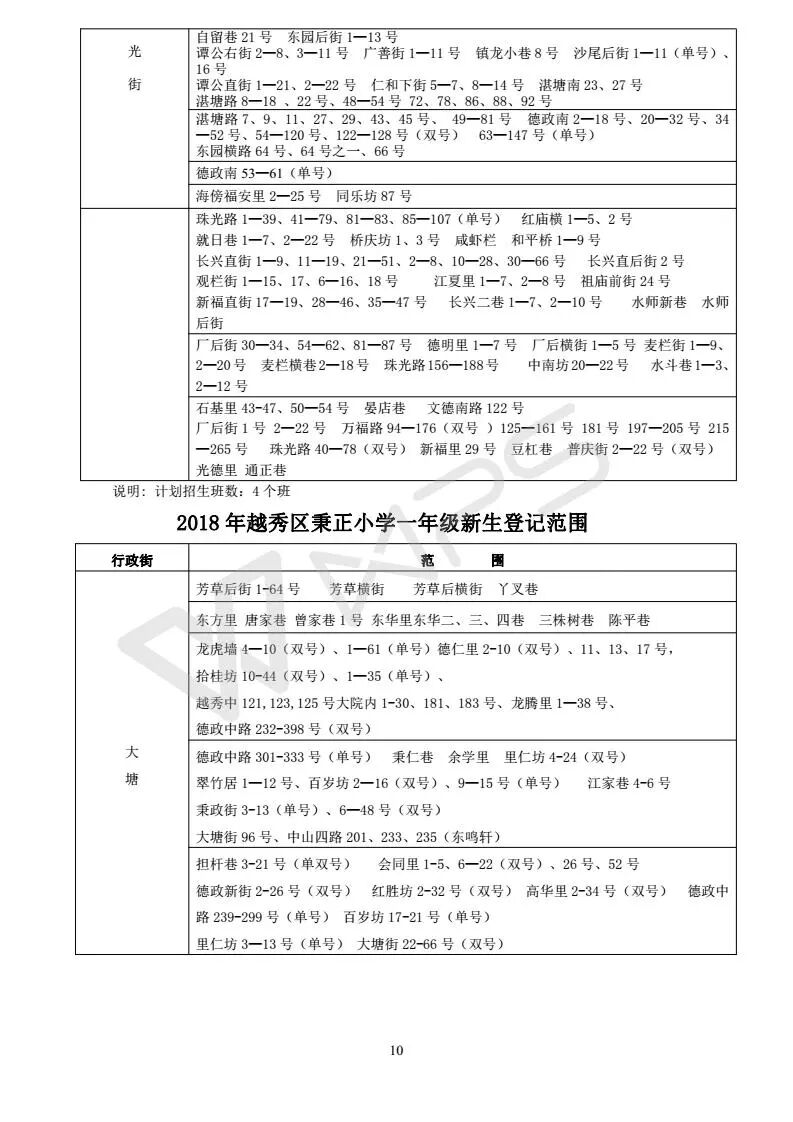 详见《2018年越秀区小学招生问答》