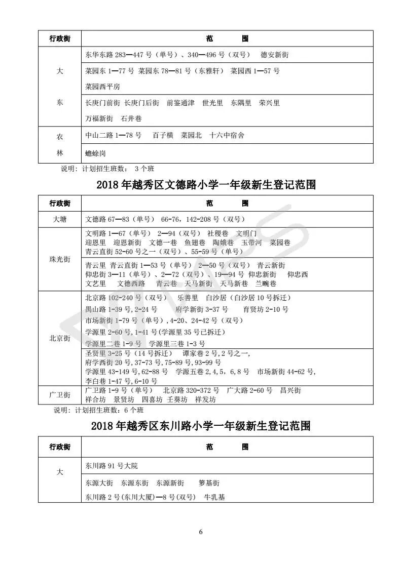 2018越秀区小学地段划分表