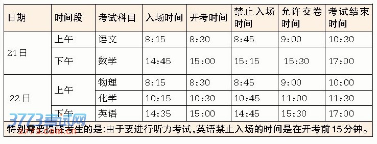 2014厦门中考考试时间及科目安排 这些“考试须知”请牢记