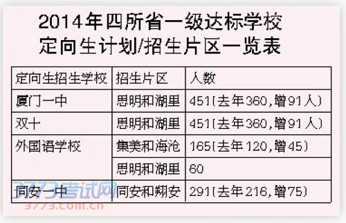 [图文]2014厦门中考定向生招生计划招生片区一览表