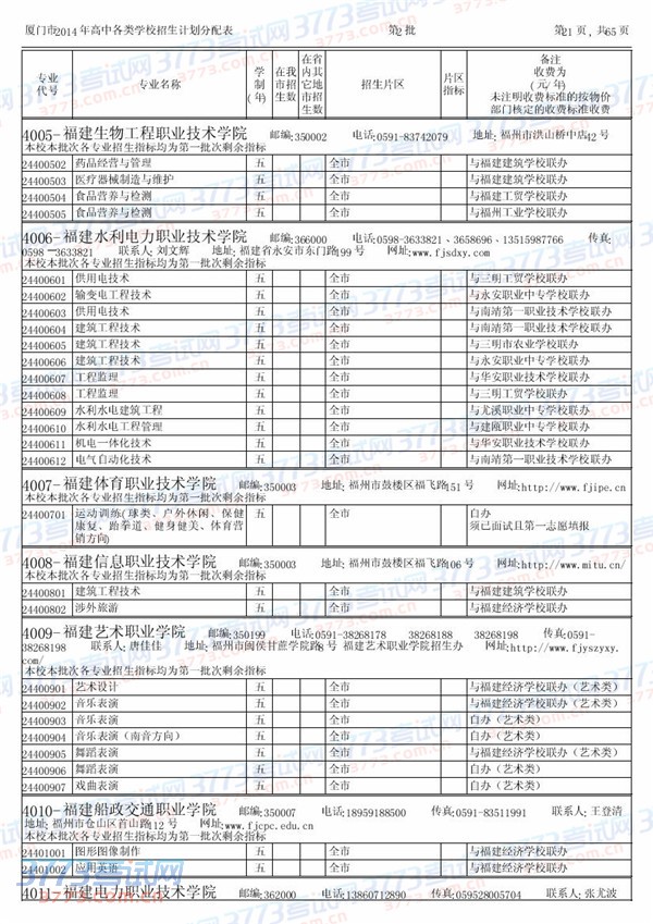 [组图]2014厦门中招五年专招生计划(第二批)