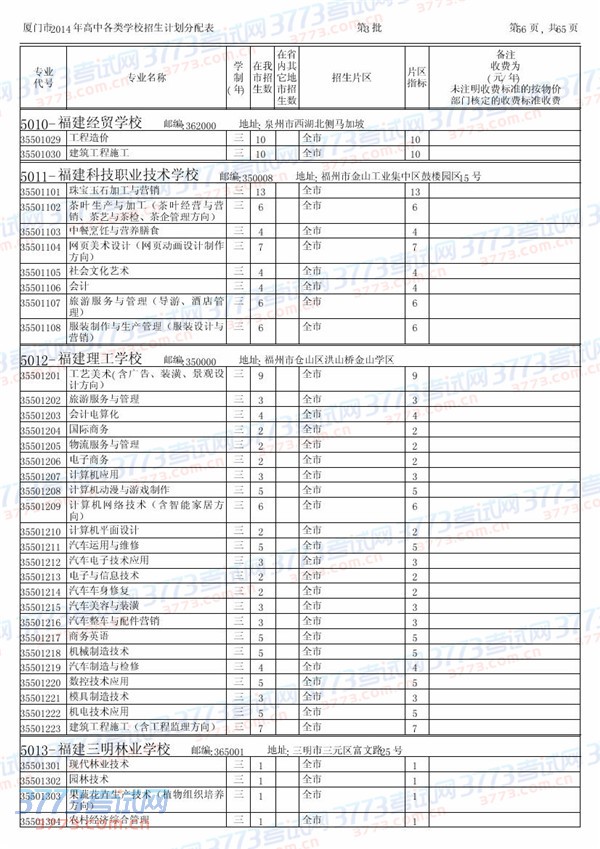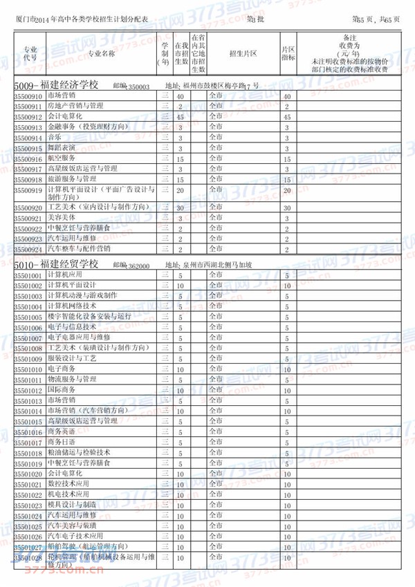 [组图]2014厦门中招中职中专招生计划(第三批含厦门市外)
