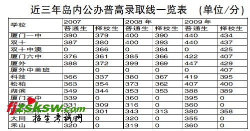 不过,这几年,中考的总分一直在发生变化,2009年总分由2008年的462分提高至510分,多了48分,今年又从去年的510分提至546分,多了36分。所以,往年的分数只能仅供参考。但是,这是否意味着今年诸如厦门一中、双十的分数线也要随之水涨船高36分,并不尽然,再加上今年首次实行平行志愿,情况更加扑朔迷离。