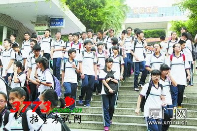 本报讯 (记者 陈冬)昨日,中考开考,全市2.58万名考生分别在96所中学参加了考试。副市长黄强带领市中考巡视组,先后到禾山中学和五缘实验学校等考点,对中考工作进行巡视检查。