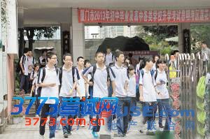 厦门中考分三段进行,第一段是3月中旬的体育测试;第二段就是现在,俗称“小中考”。第三段是6月22日和23日考语文、数学、英语、物理和化学,又叫做“大中考”。由于地理和生物在初二年级结束,因此初二学生也要走进“小中考”考场。