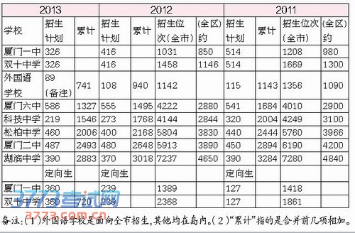[图文]2013年厦门中招第一批部分普高招生计划/位次表