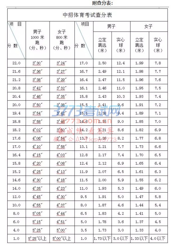 市区学校中招体育考试将于近日开考!内附查分表,请收藏