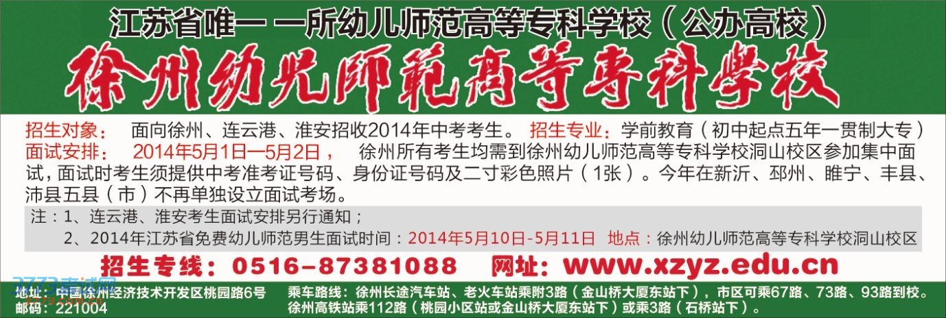 2、面试地点:徐州幼儿师范高等专科学校洞山校区