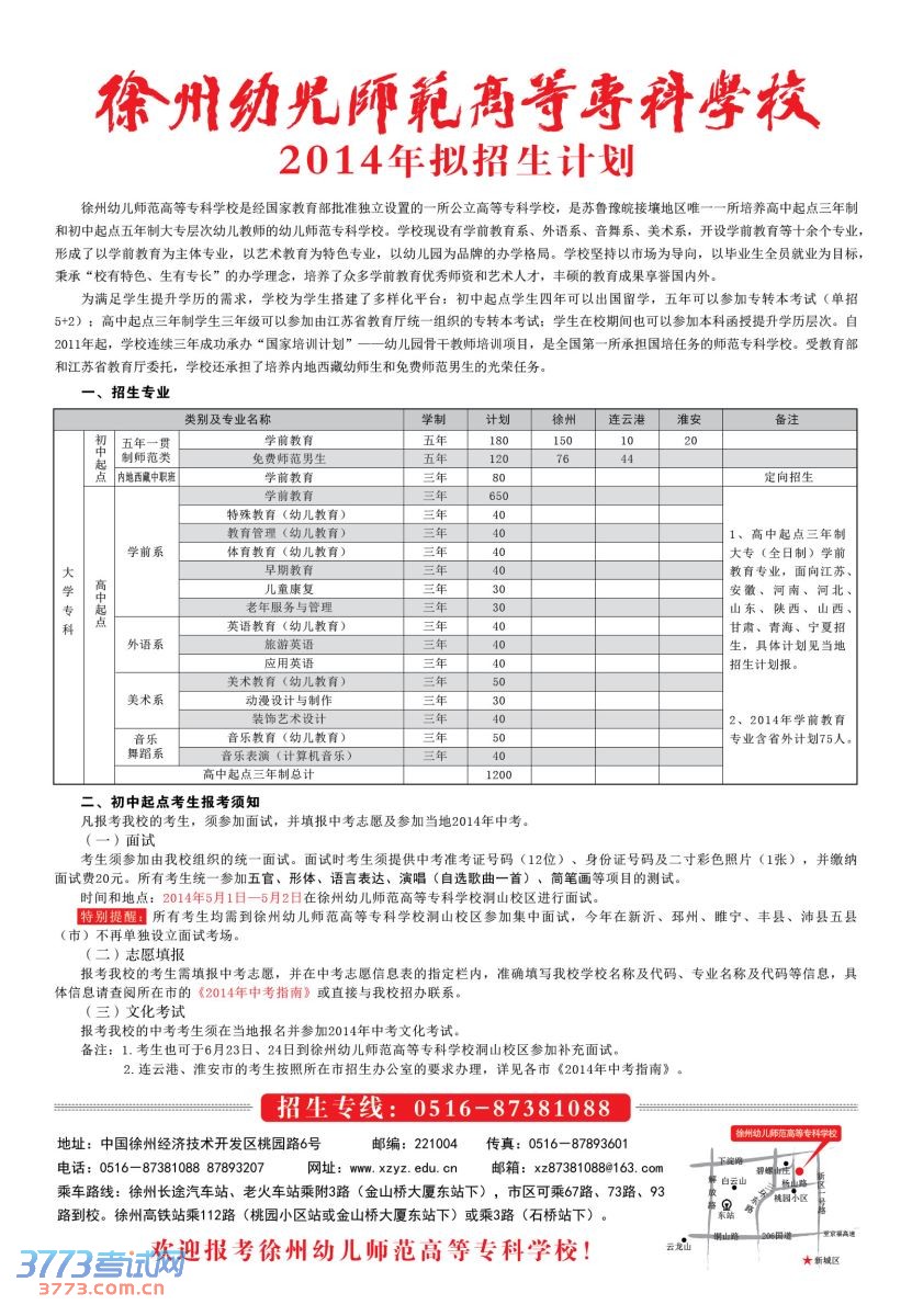 [图文]徐州幼儿师范高等专科学校2014年拟招生计划
