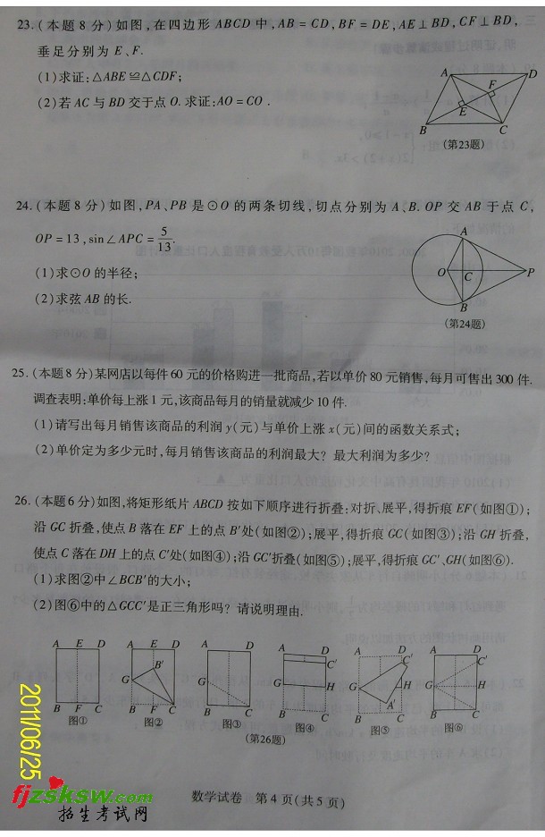 [组图]江苏徐州2011中考数学试题及答案