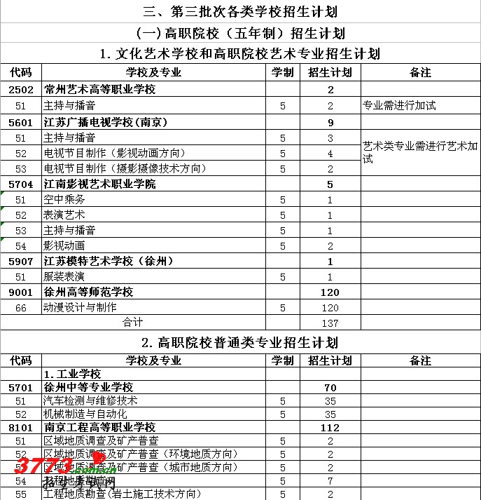 2012年徐州市高中阶段教育招生计划(二)