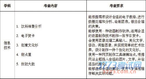 考查采取现场操作、当场打分的方式。考生在进入考场前由考点组织抽签,初二考生从公布的6个生物实验、5个信息技术实践任务中通过抽签选定1个生物实验和1个信息技术实践任务,初三考生从公布的6个物理、6个化学实验中通过抽签各选定1个物理和1个化学实验,并按要求在规定时间内独立完成操作。