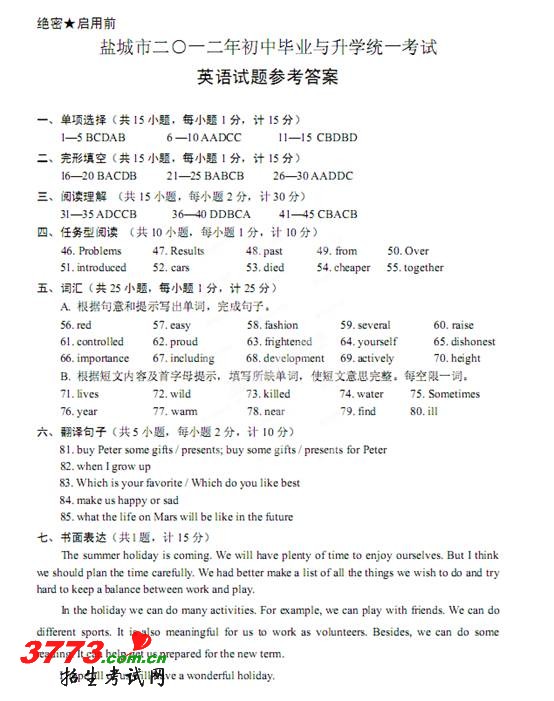 相关文章 2016盐城初二会考地理生物试题及答案2016盐城中考政治历史试题及答案2016盐城中考物理化学试题及答案2016盐城中考英语答案 盐城中考英语试题及答案2016盐城中考数学答案 盐城中考数学试题及答案2016盐城中考语文答案 盐城中考语文试题及答案盐城市2016年高中高水平运动队和艺术科技社团招2016盐城中考高中高水平运动队和艺术科技社团招2016盐城中考中招工作意见正在修改完善中滨海县教育局2016盐城中考体育考试时间 触屏版 电脑版 3773考试网 琼ICP备12003406号-1