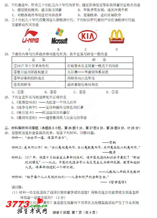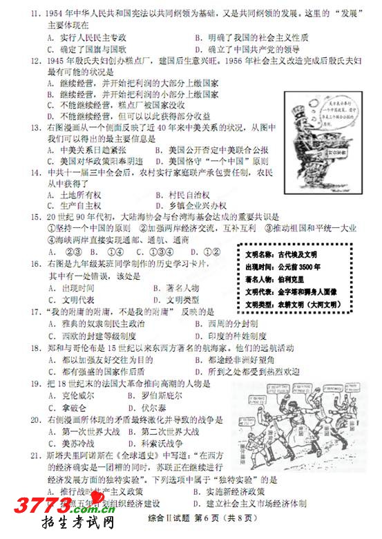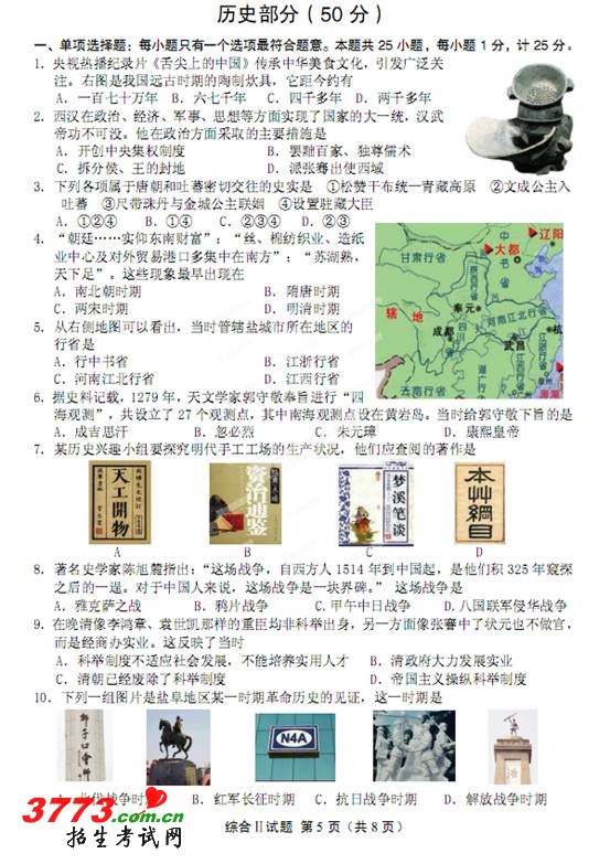 [组图]2012年江苏省盐城中考政治历史试卷及答案