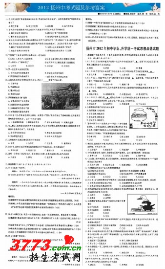 [组图]2012扬州中考试题及答案下载