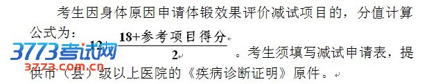 2.病免:患重大疾病考生(指患有癌症、白血病、痴呆、脑瘫、严重的心脏病、心血管疾病、脑部施行过开颅手术、除手脚指以外肢体骨折在三个月以内的)可申请体锻效果评价免试,经批准后按每个考试项目各减1分的办法计入考生升学成绩。考生须填写免试申请表,提供市(县)级以上医院的《疾病诊断证明》、住院证、住院治疗病历的原件及复印件。