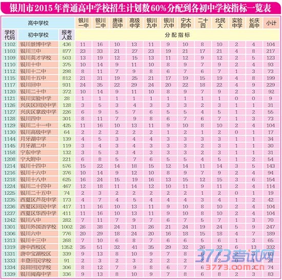 [组图]2015银川中考指标生分配计划及三区高中招生计划表
