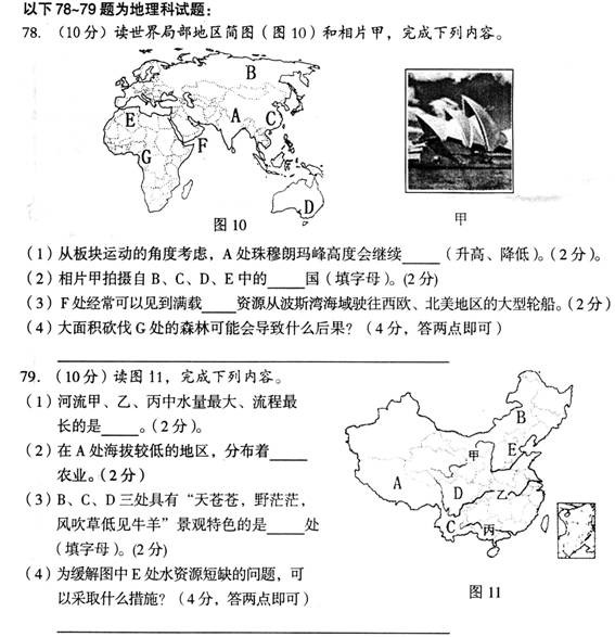 (4)水土流失严重,土地荒漠化加剧,生物多样性遭到破坏,气候变暖等任两点(4分)