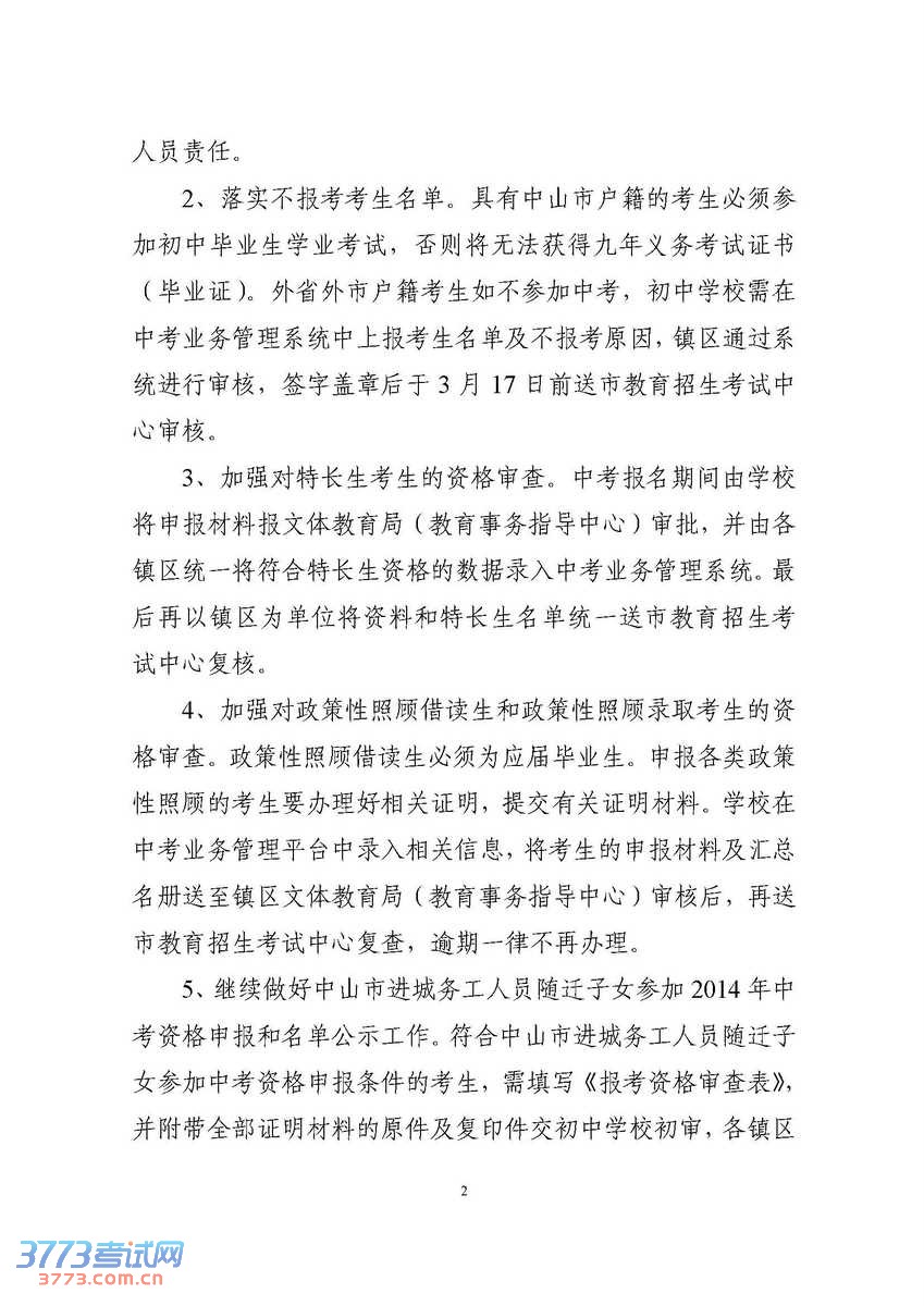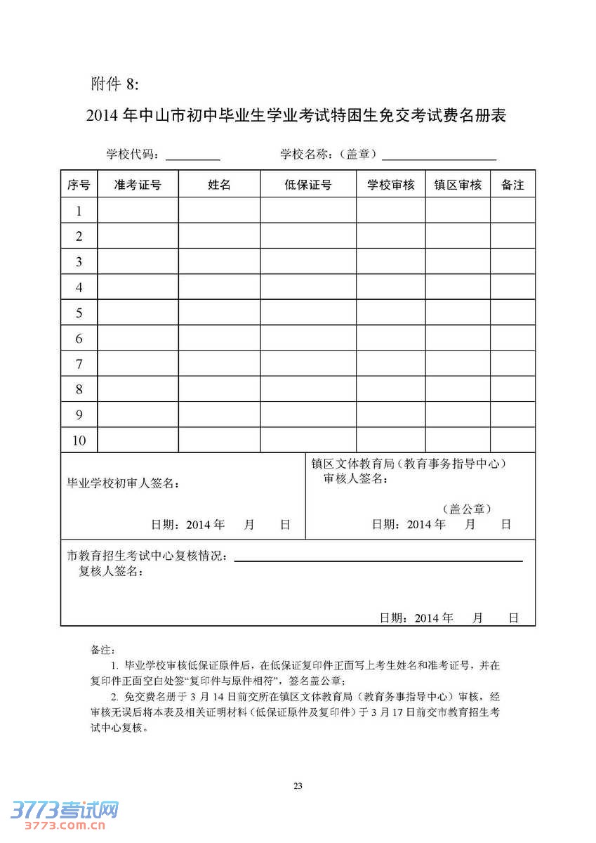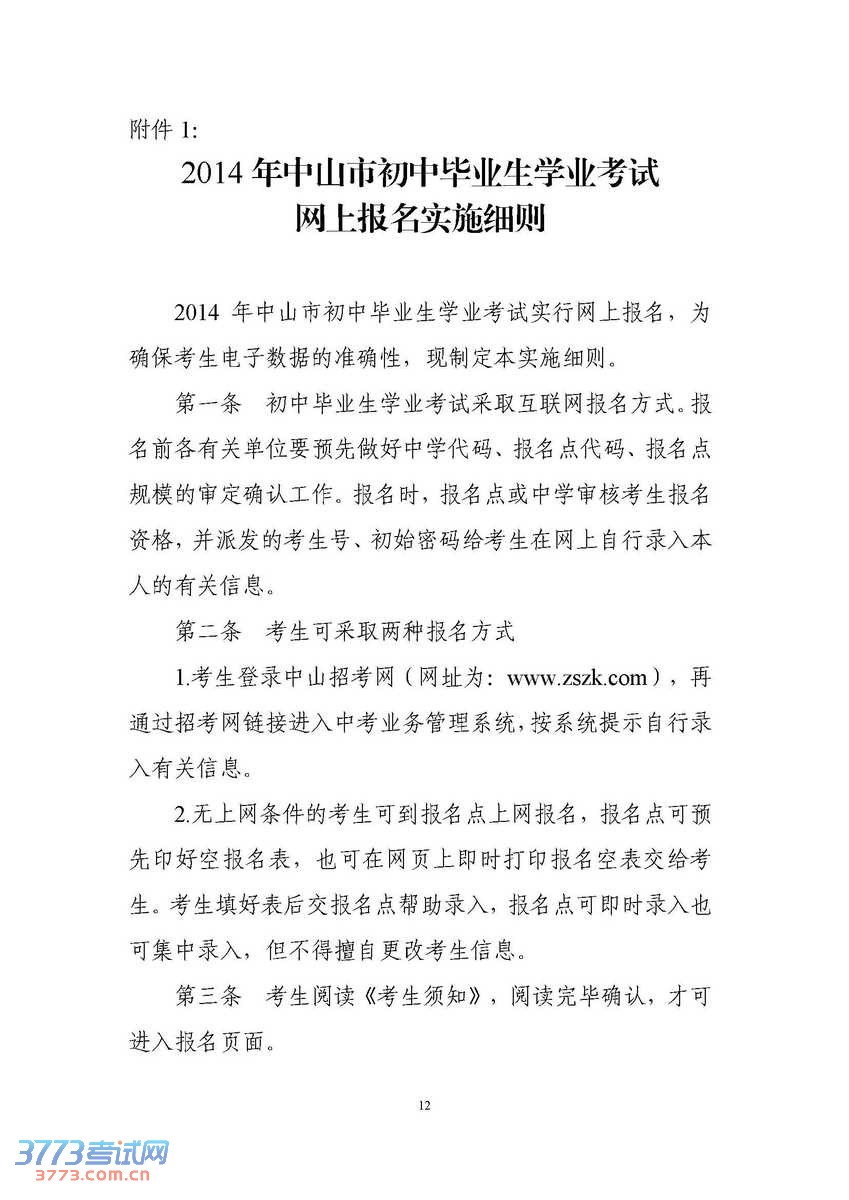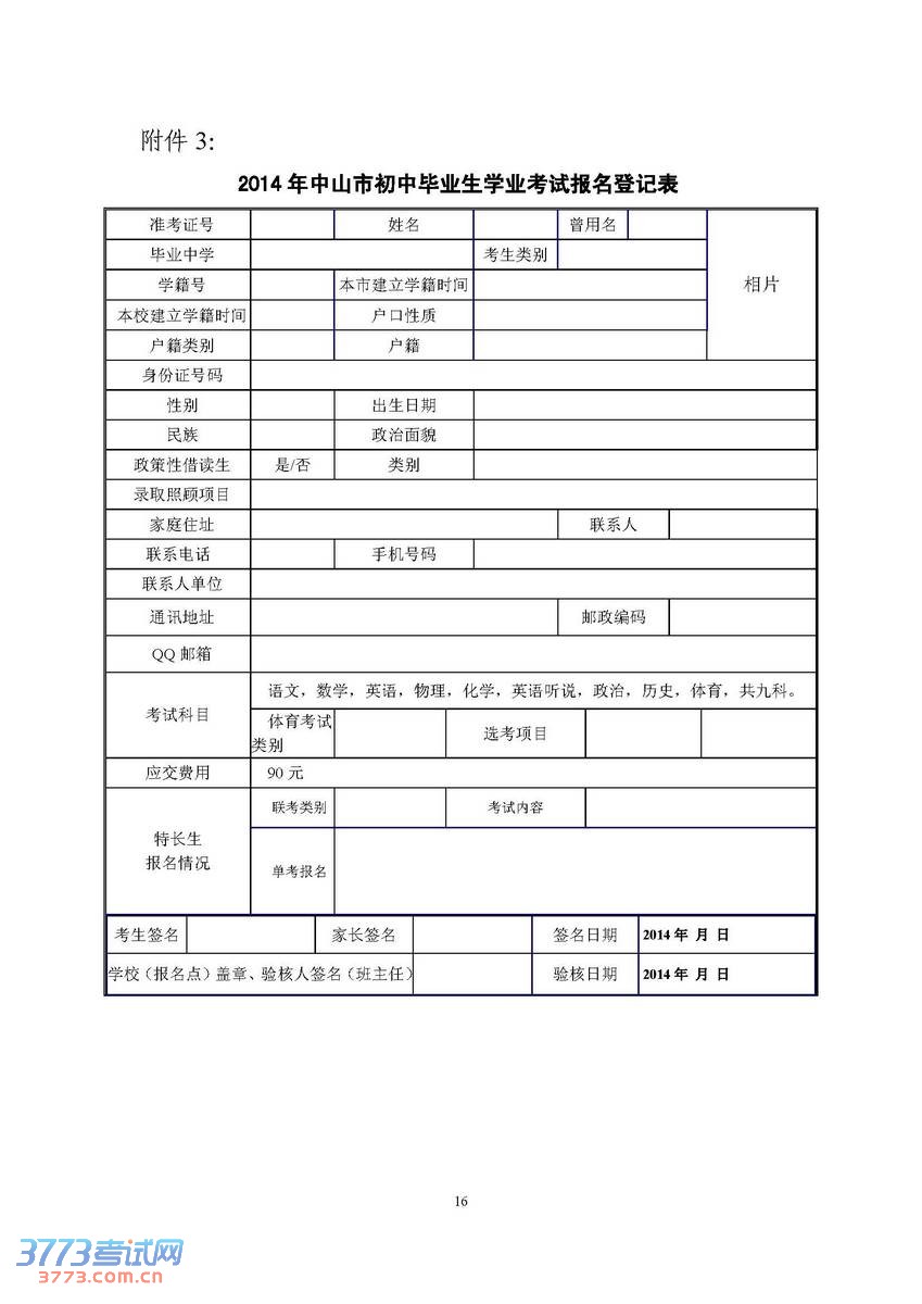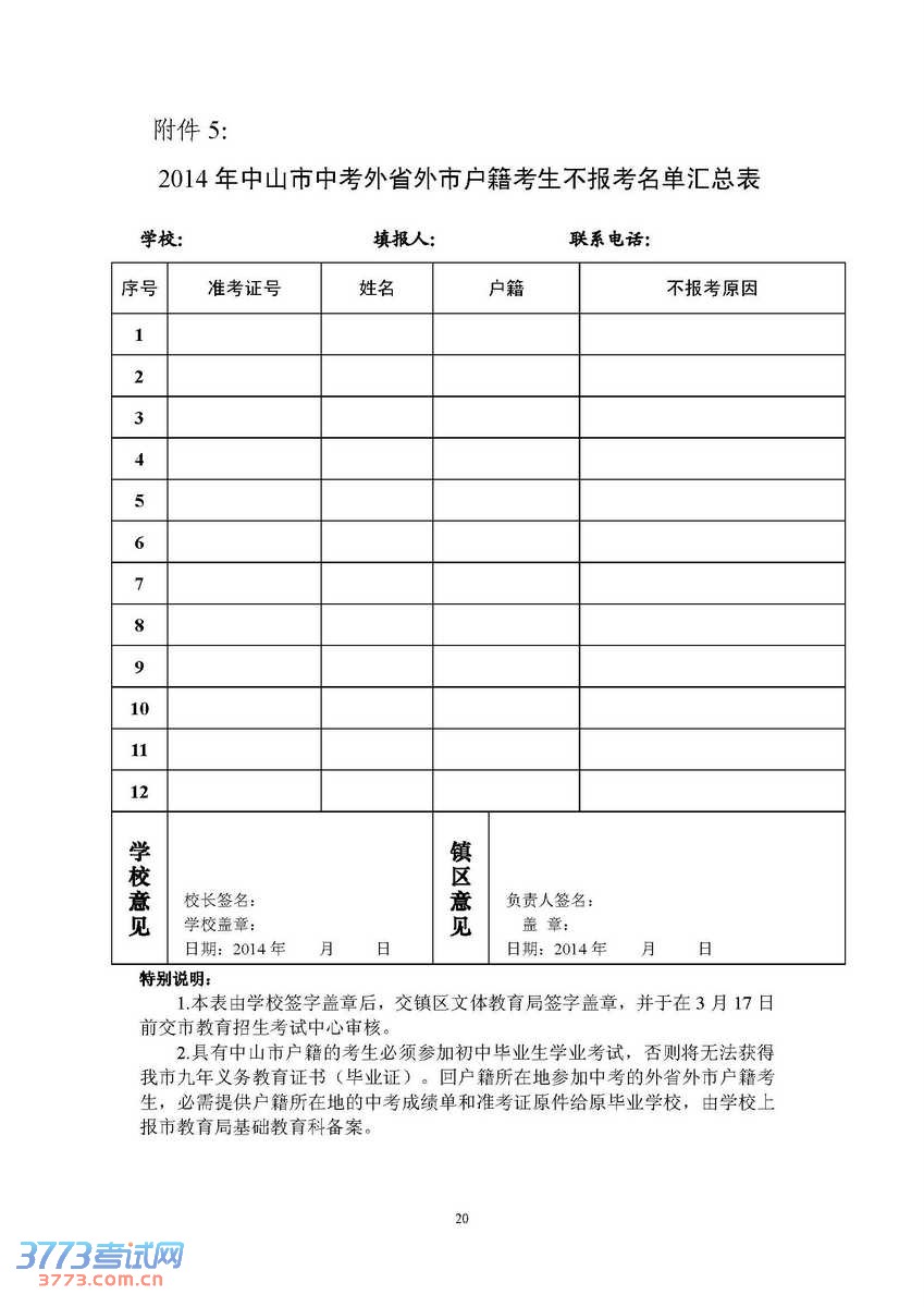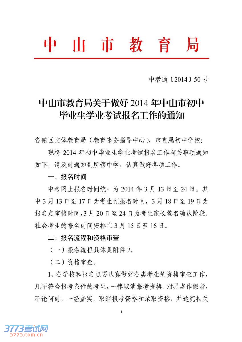 中山市教育局关于做好2014年中山市初中毕业生学业考试报名工作的通知