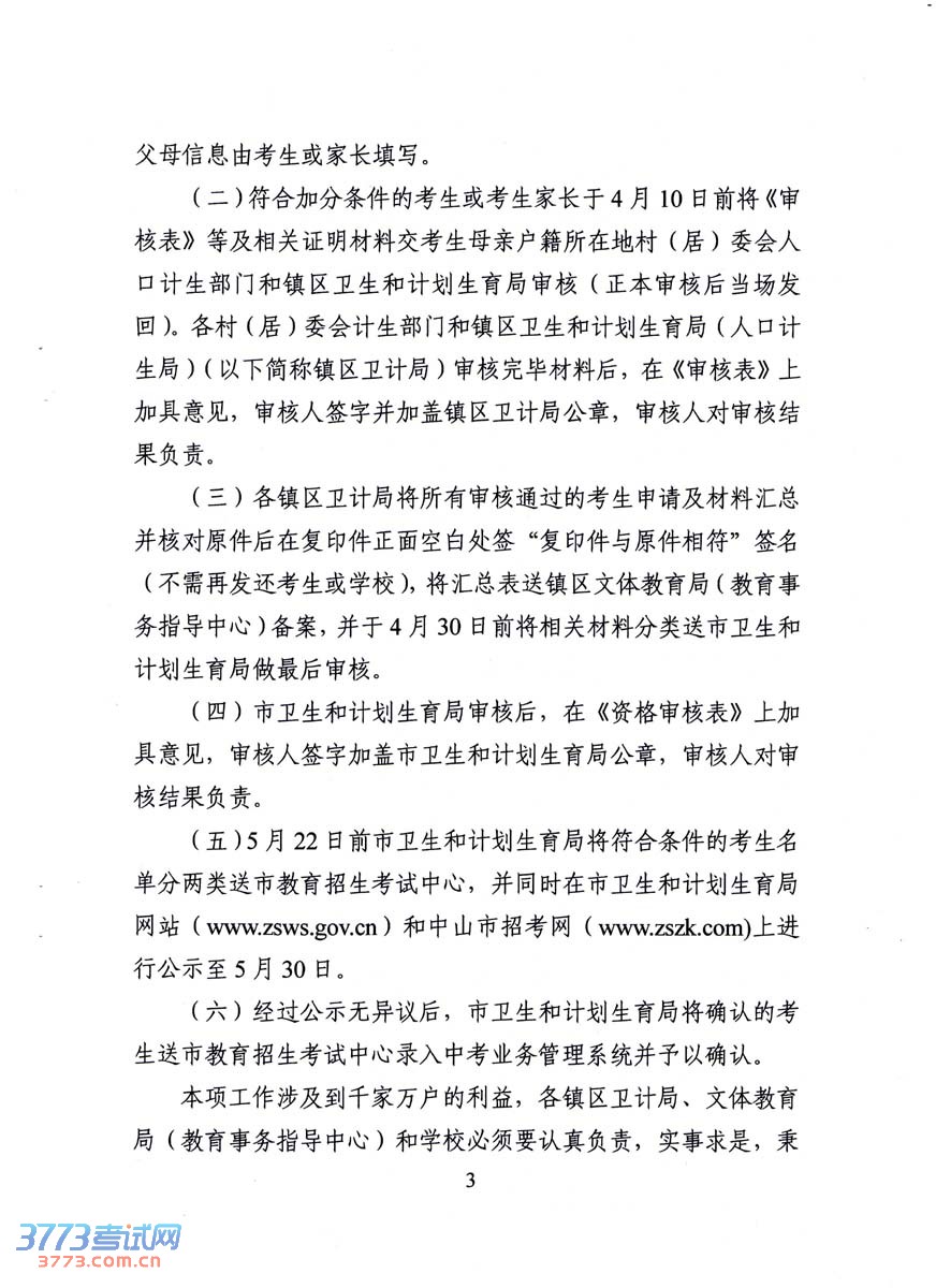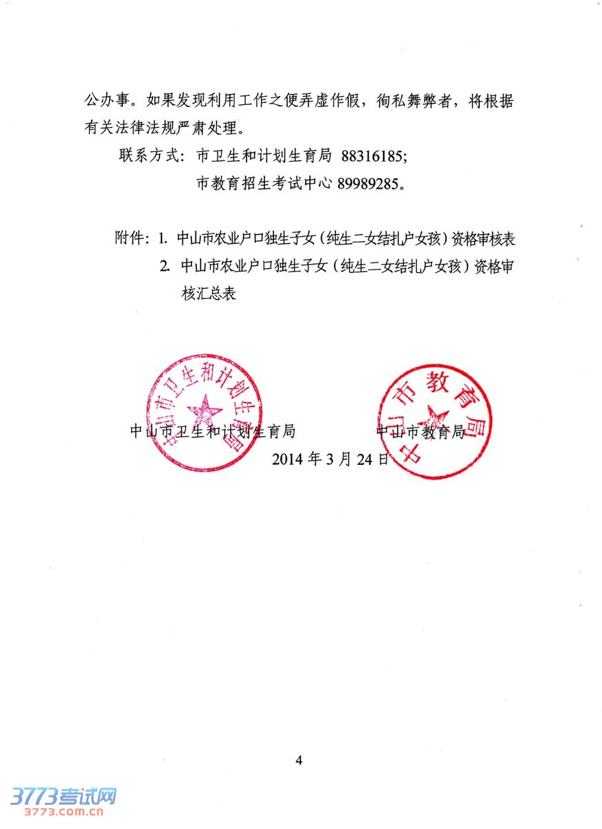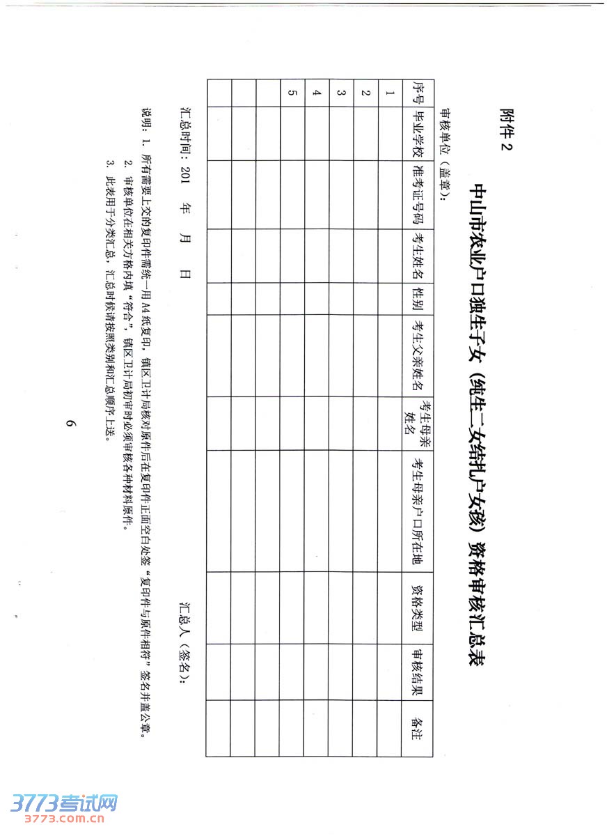 [组图]2014中山中考农业户口独生子女和纯二女结扎户女孩资格审核