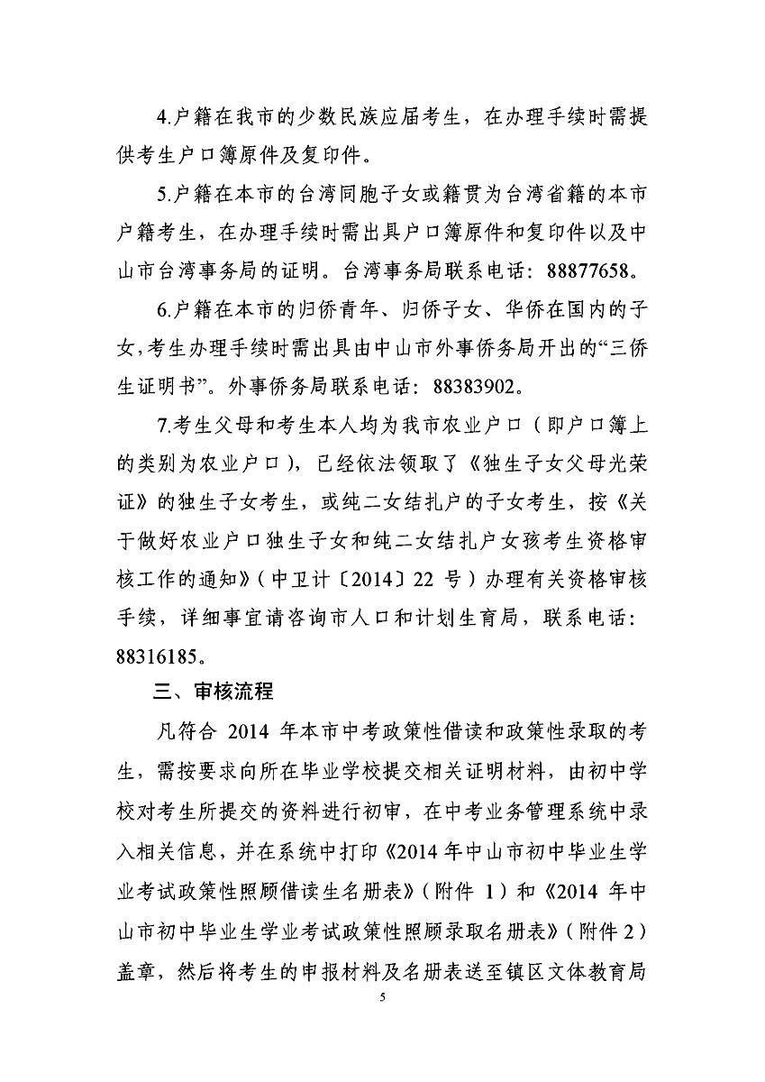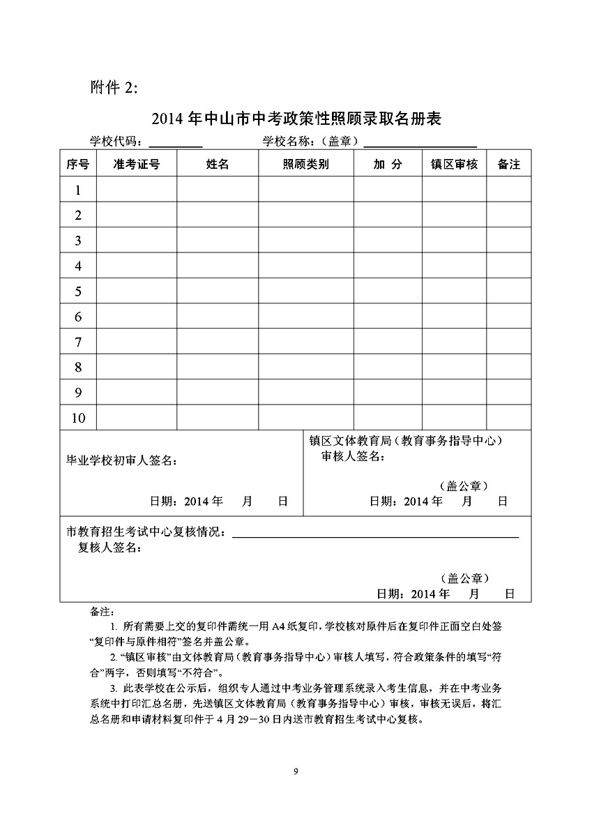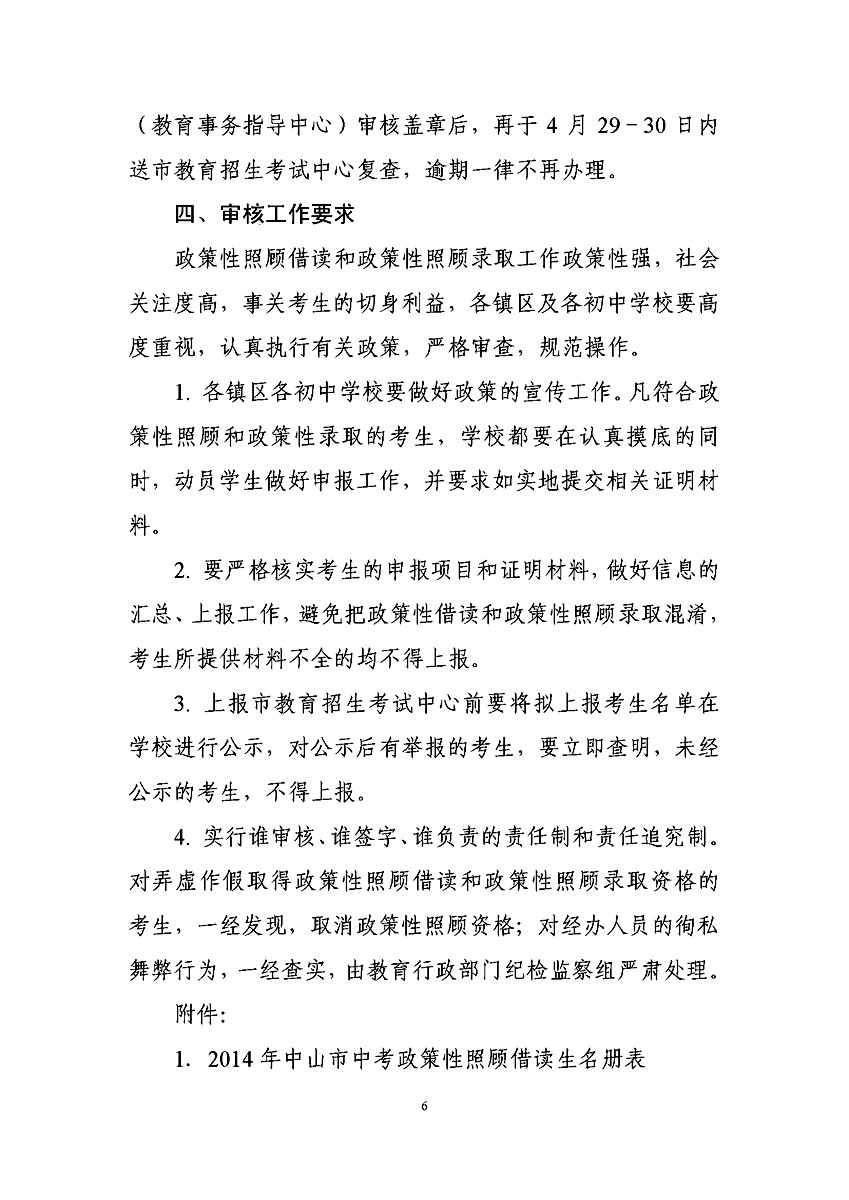 [组图]2014中山中考政策性加分照顾和录取审核工作通知