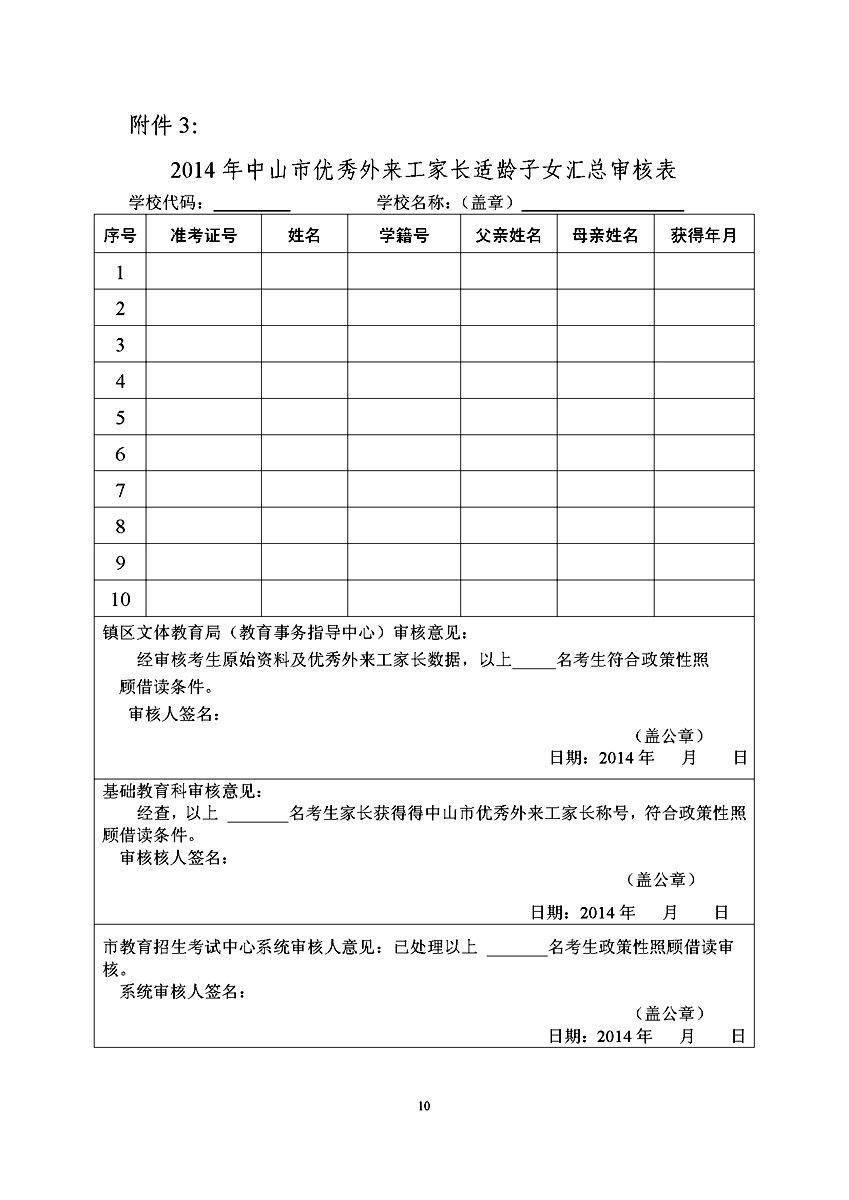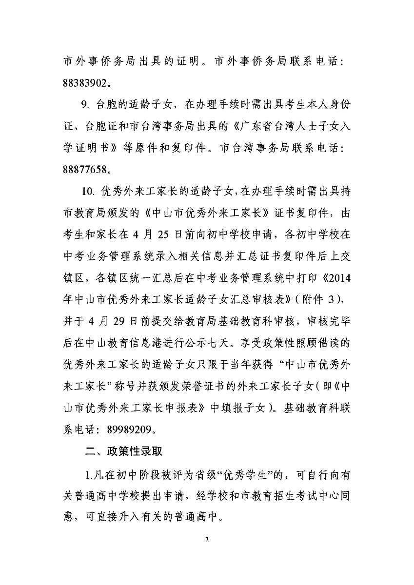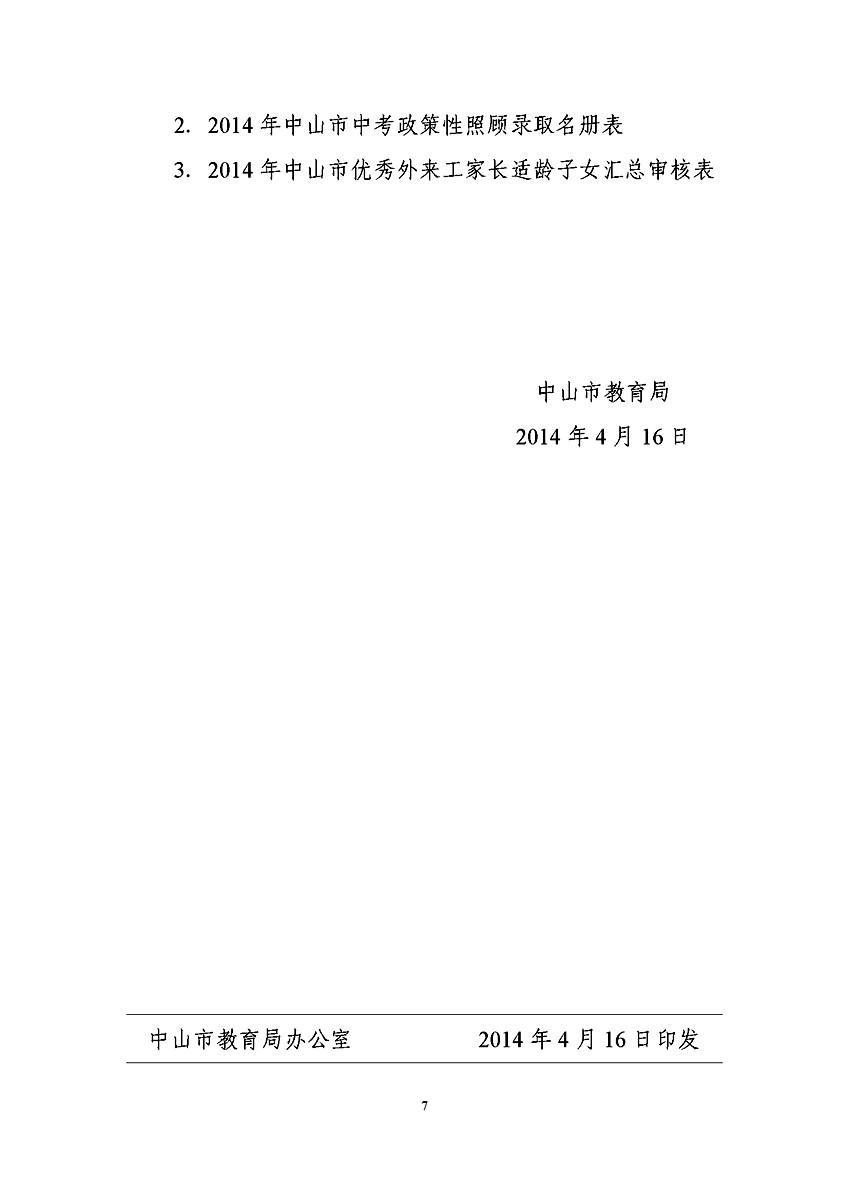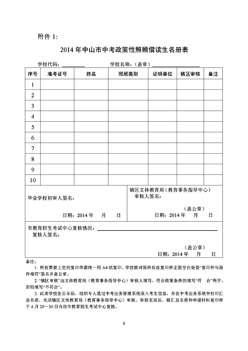 [组图]2014中山中考政策性加分照顾和录取审核工作通知