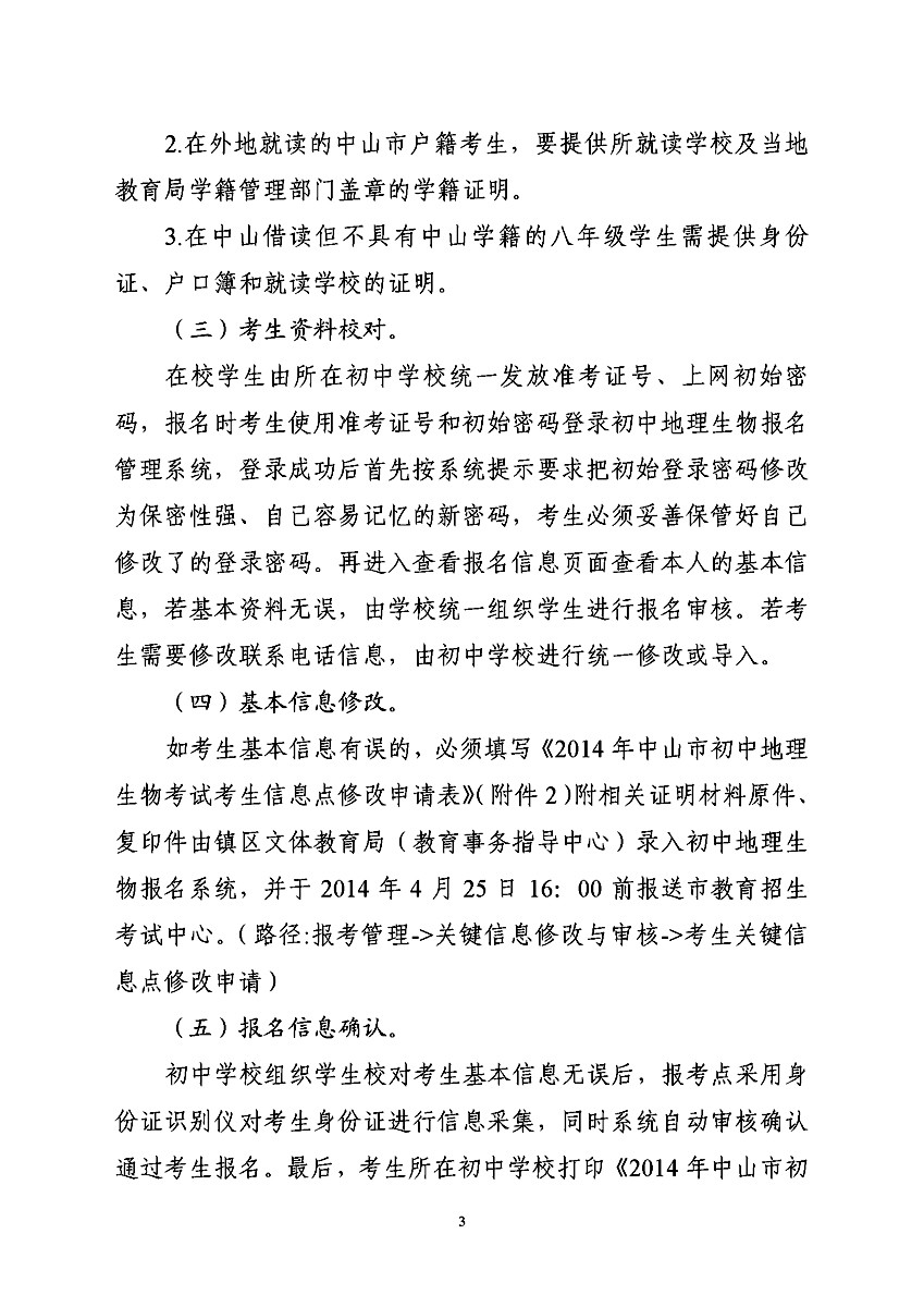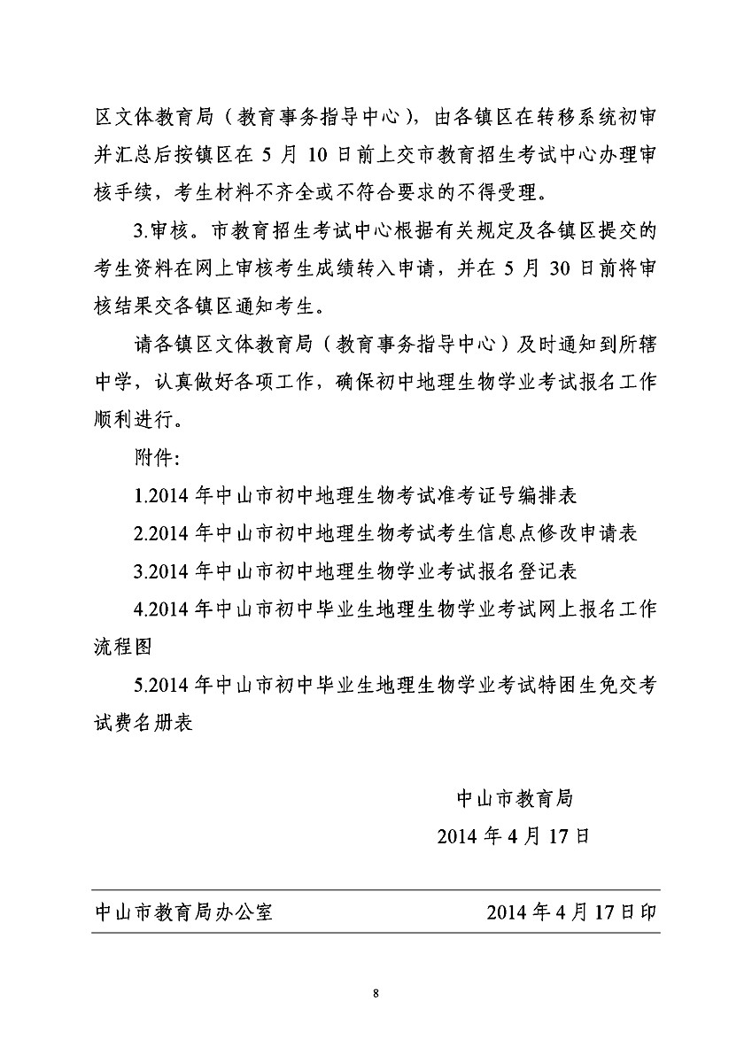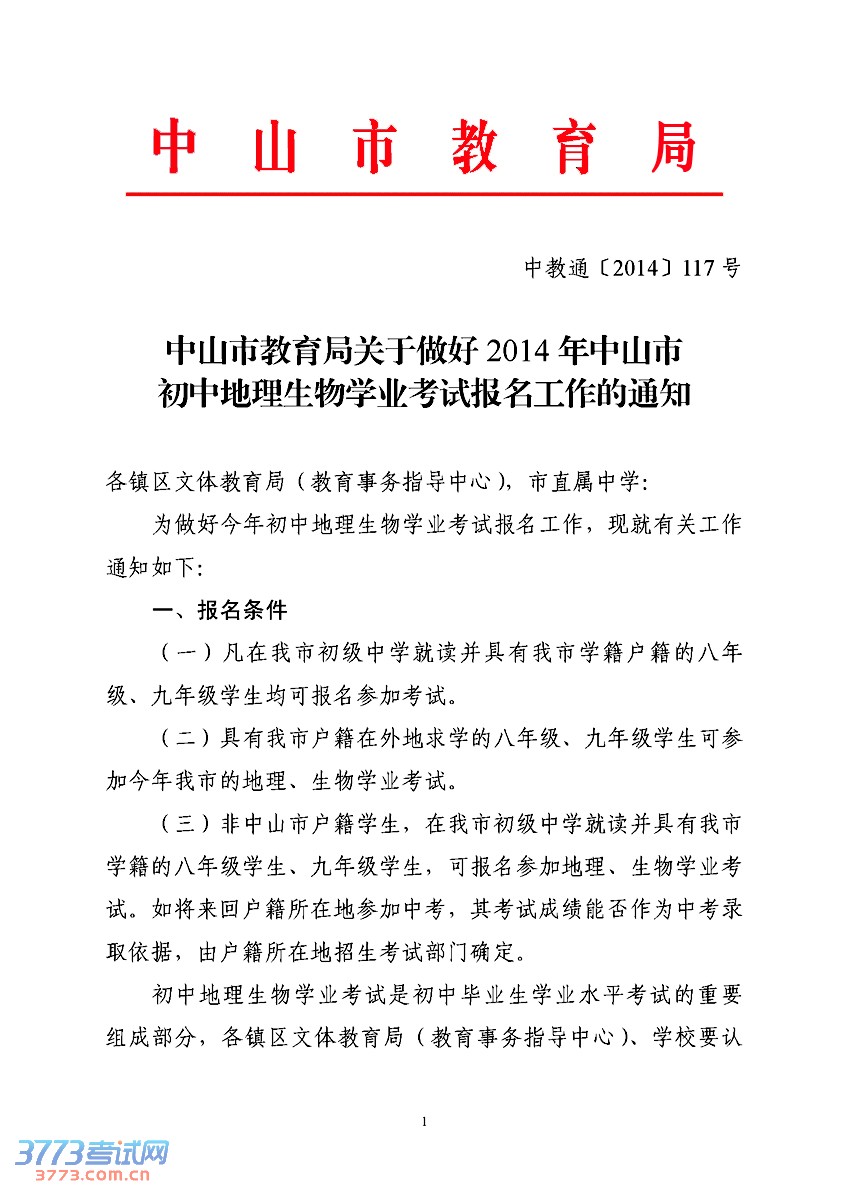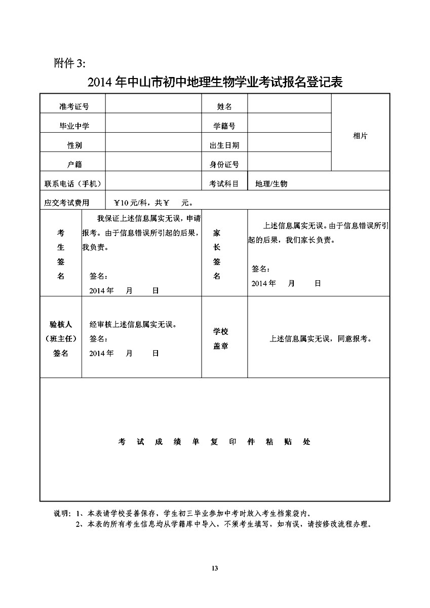 [组图]2014年中山市初中地理生物学业考试报名工作的通知