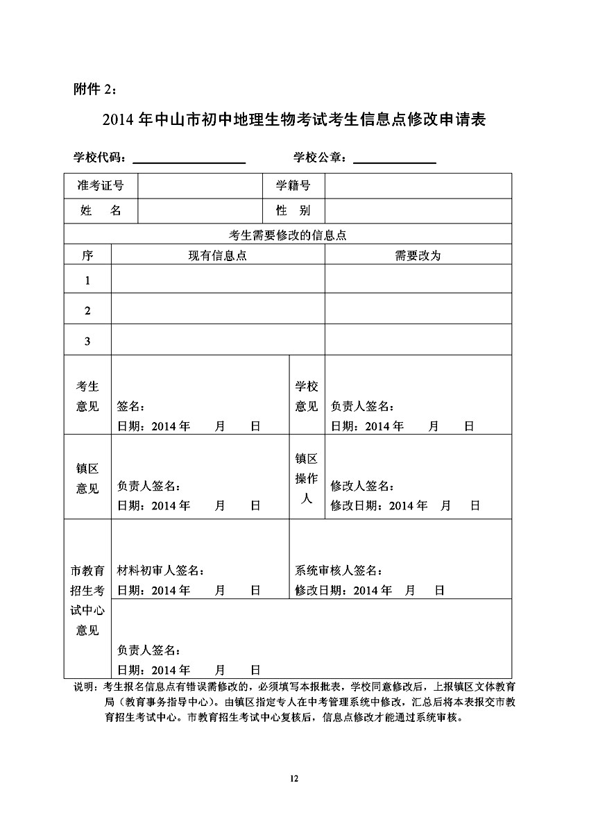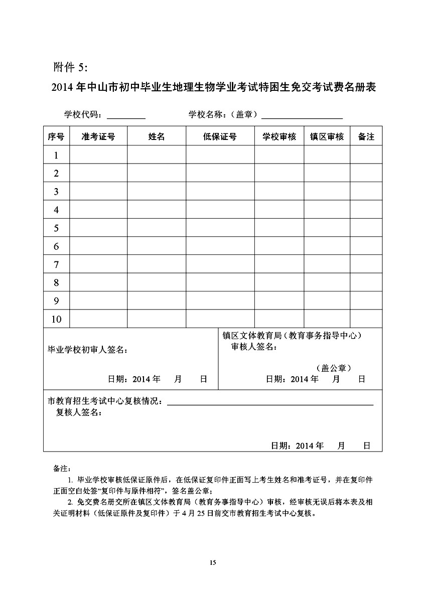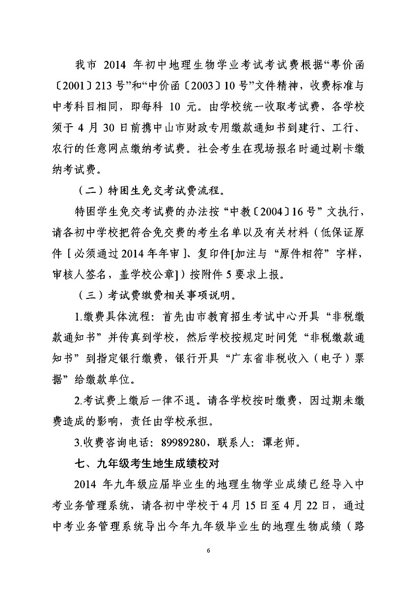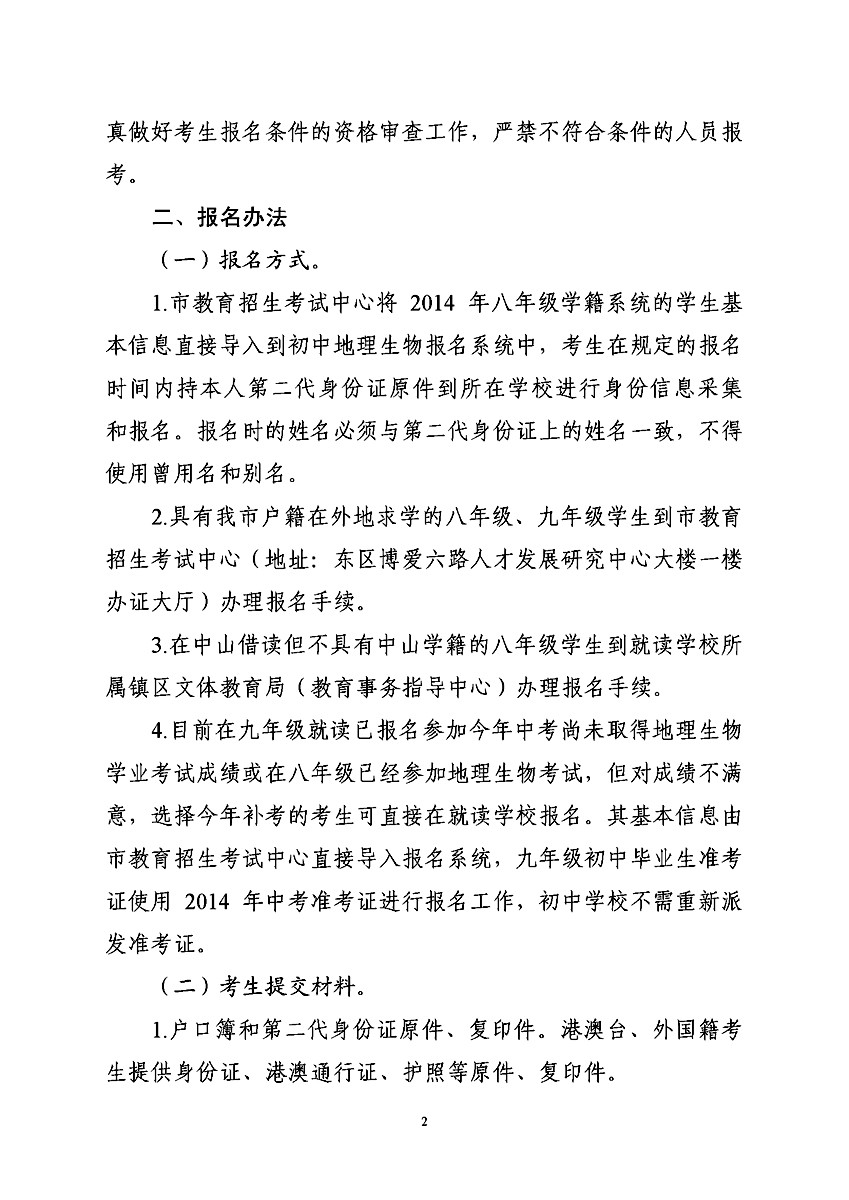 [组图]2014年中山市初中地理生物学业考试报名工作的通知