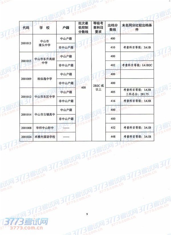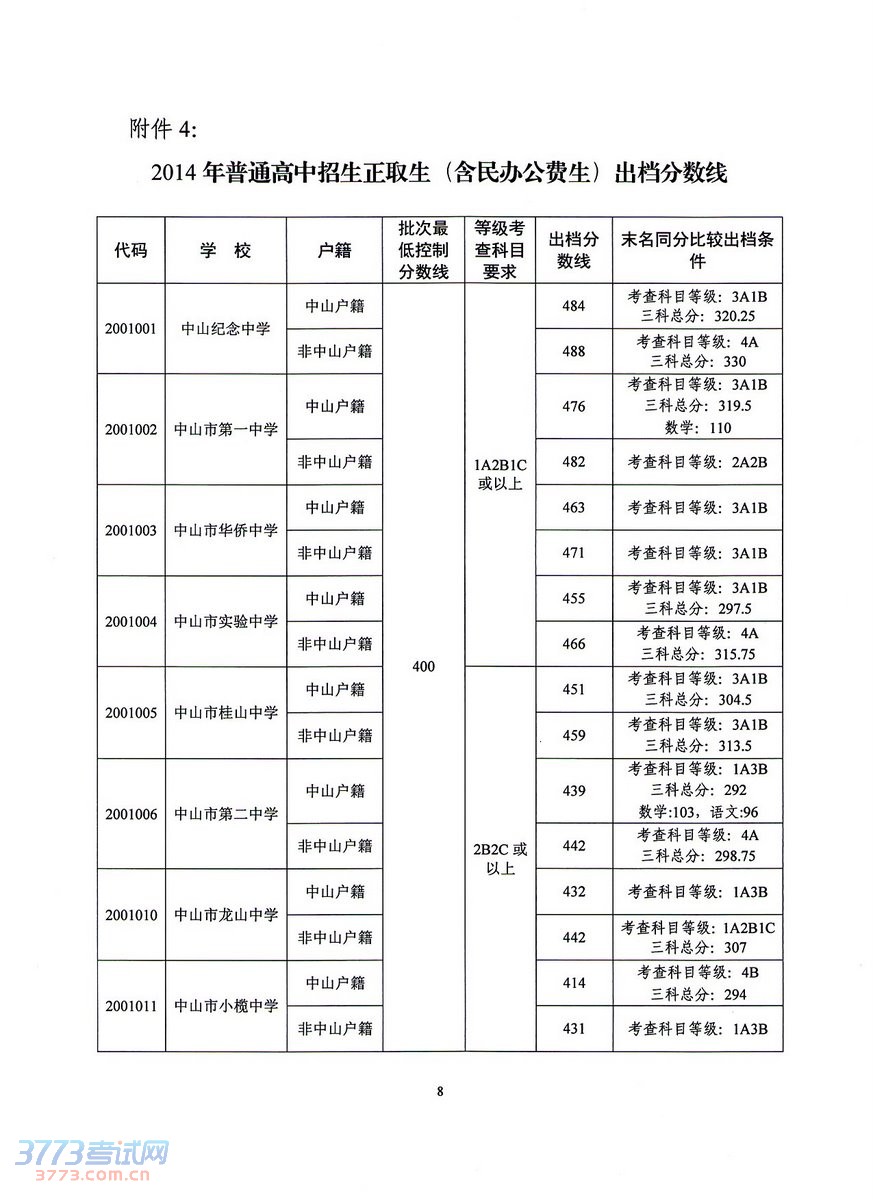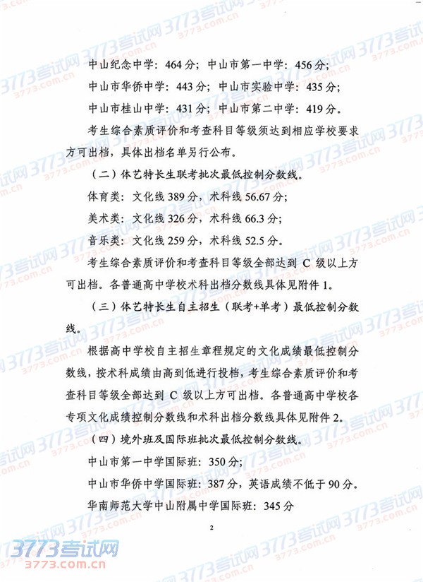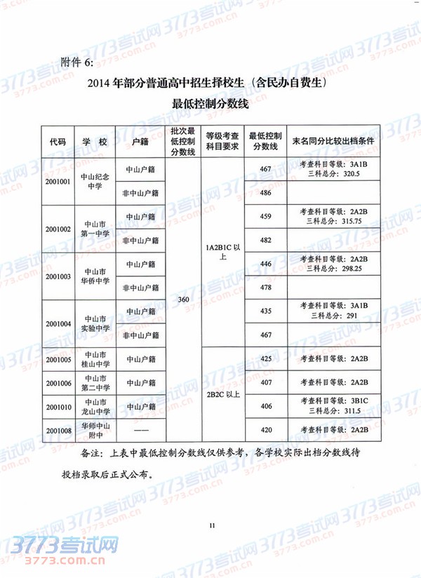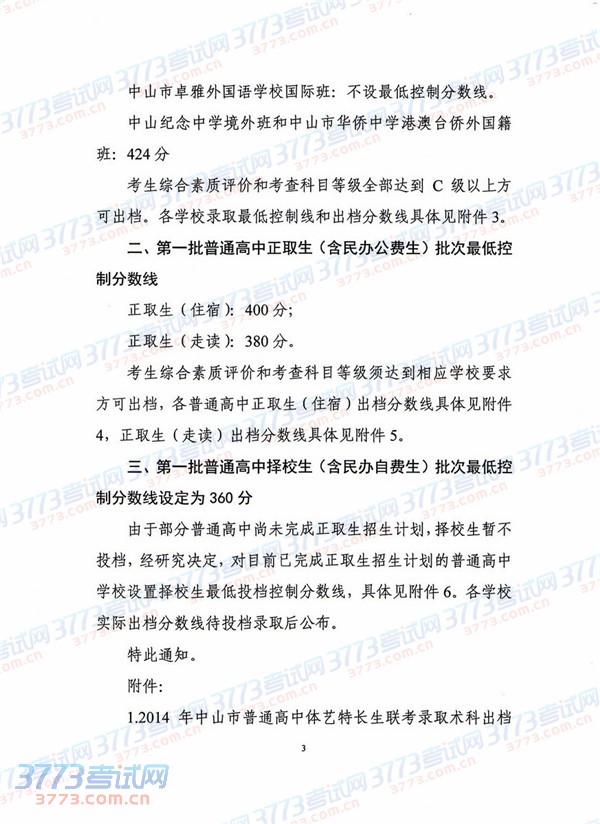 [组图]2014中山中考录取分数线与学校出档分数线公布
